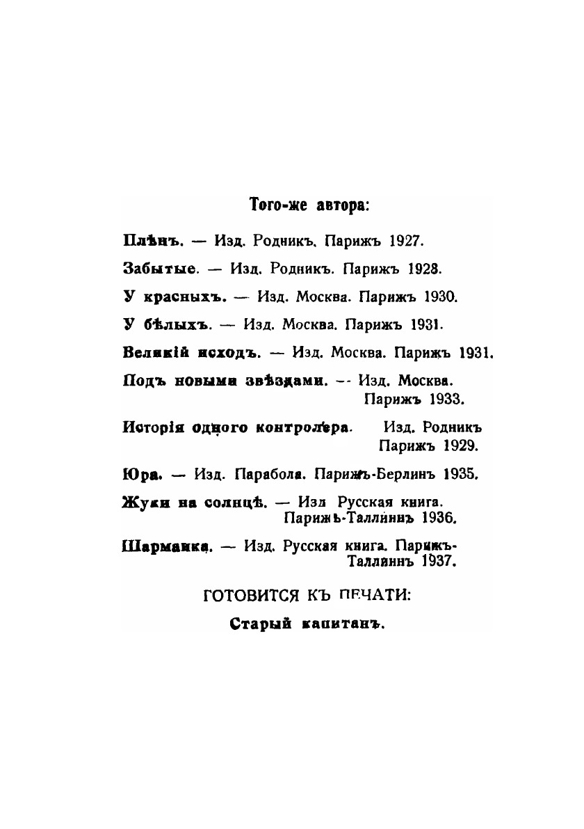 Эта книга — репринт оригинального издания (издательство "Париж: Типография "Libris"", 1938 год), созданный на основе электронной копии высокого разрешения, которую очистили и обработали вручную, сохранив структуру и орфографию оригинального издания. Редкие, забытые и малоизвестные книги, изданные с петровских времен до наших дней, вновь доступны в виде печатных книг.