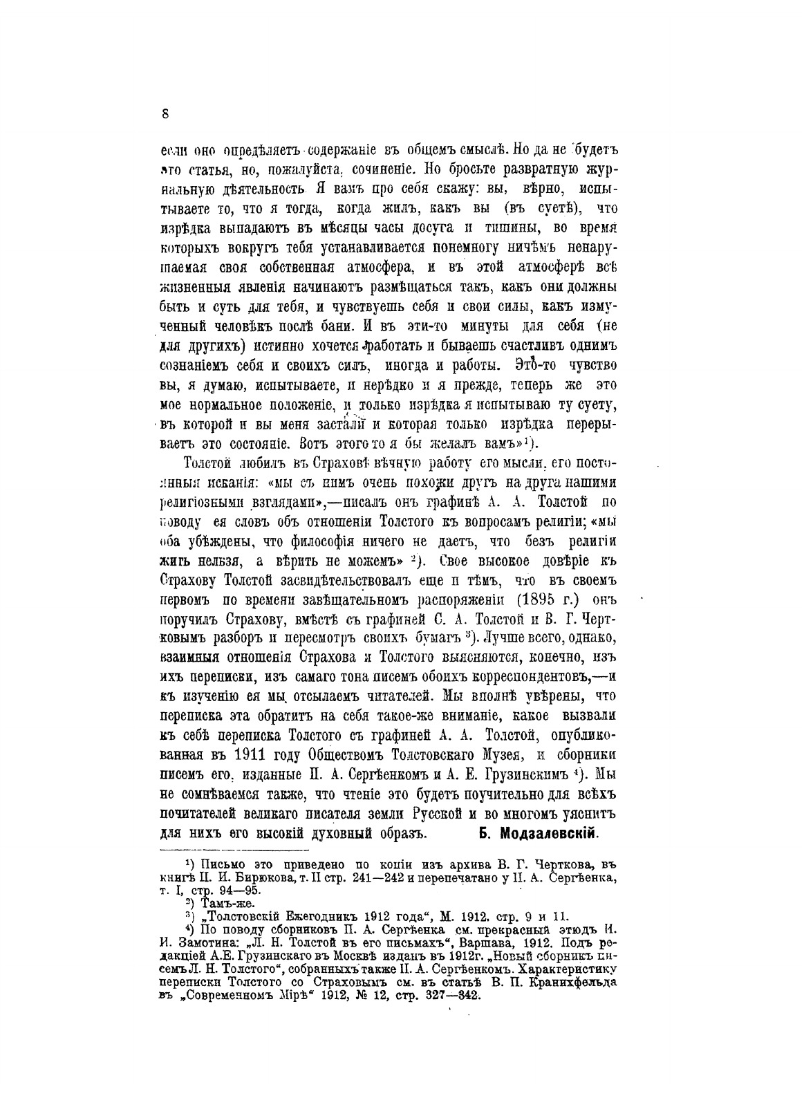Переписка Л. Н. Толстого с известным в свое время (1860-1890-е гг.), но еще мало оцененным критиком и мыслителем Николаем Николаевичем Страховым (родился 16-го октября 1828 г. в г. Белгороде Курской губернии, умер 24-го января 1896 г. в Петербург) печатается по подлинникам, принадлежащим Обществу Толстовскаго Музея и семейному архиву Л.Н. Толстого.