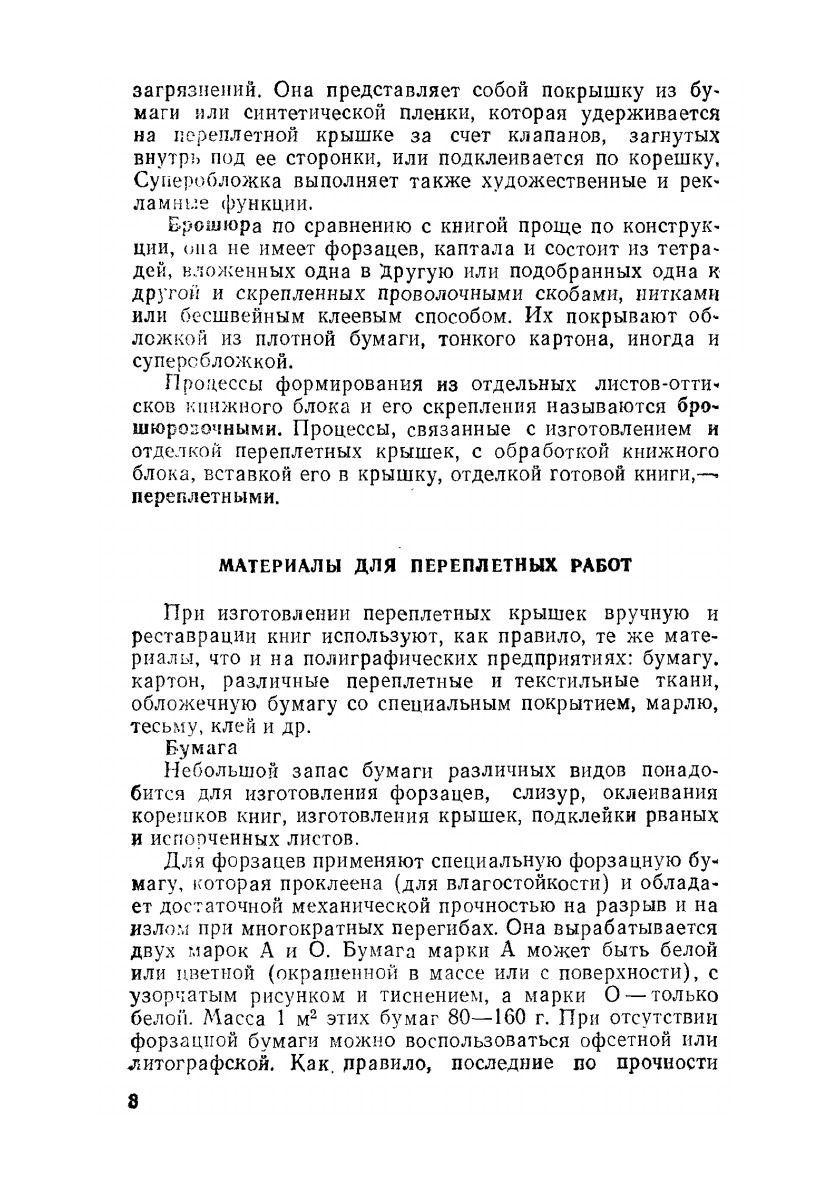Цель этой книги - познакомить широкие круги читателей с искусством ручных переплетных операций. В ней рассказывается, из каких элементов состоит книга, из каких материалов она сделана, какие инструменты нужны для переплетных работ и как их изготовить самому, как организовать рабочее место переплетчика. Читатель познакомится с простейшими приемами ремонта книги без ее разборки, узнает, как полностью реставрировать и восстановить книгу, найдет сведения по декоративной отделке книжных блоков и переплетных крышек. В книге рассказывается также о картонажных работах, о том, как самому сделать альбом, блокнот, записную книжку. Большую помощь в приобретении практических навыков по переплетным работам окажут иллюстрации. Адресована она книголюбам.Издание третье, переработанное и дополненное.