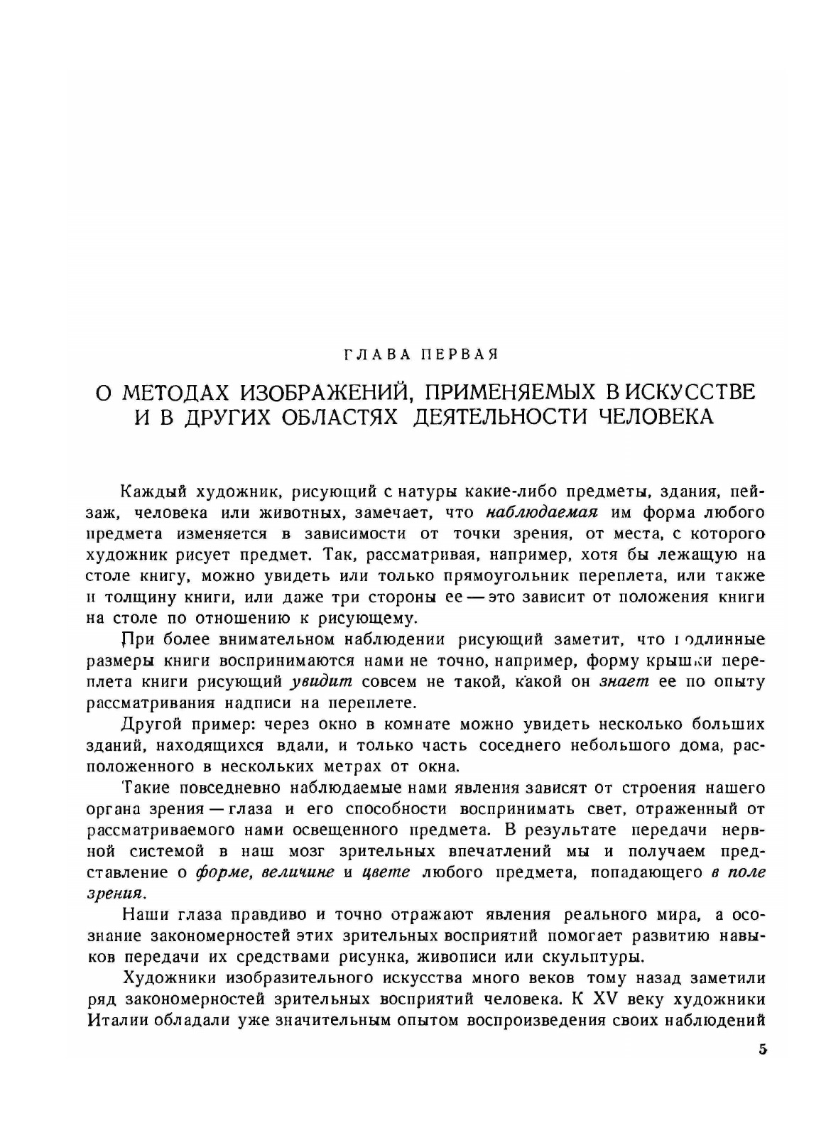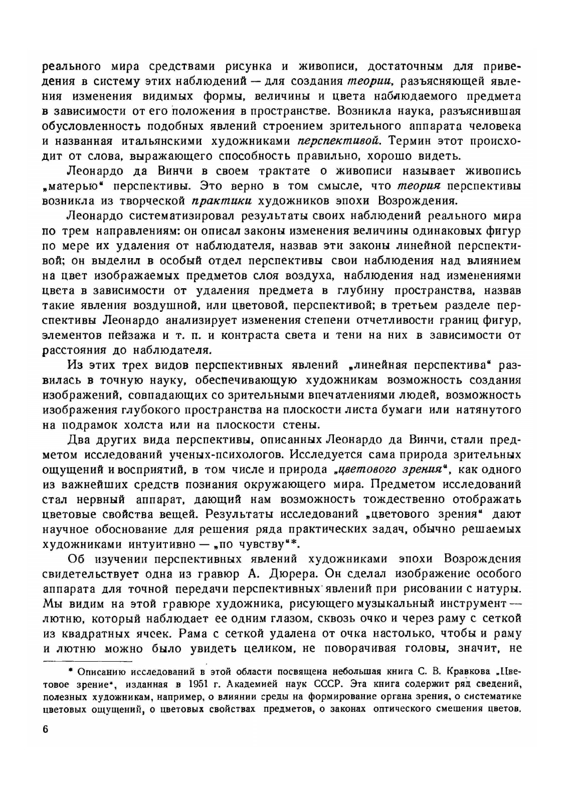 Подготовляя рукопись для четвертого издания книги „Перспектива", автор вновь пересмотрел текст и иллюстрации, чтобы устранить недочеты, отмеченные читателями третьего издания. Автор стремится ответить на пожелания читателей о дальнейшем сближении содержания книги с творческой практикой художников станковой живописи, графики, скульптуры, с одной стороны, ас другой — с практикой художников архитектуры, монументально-декоративного и декоративно-прикладного искусства. В процессе своей педагогической работы по курсу "Перспектива", за время с 1949 года автор проверил на опыте некоторые новые, менее трудоемкие приемы построения перспективных изображений и описал их в этом издании...