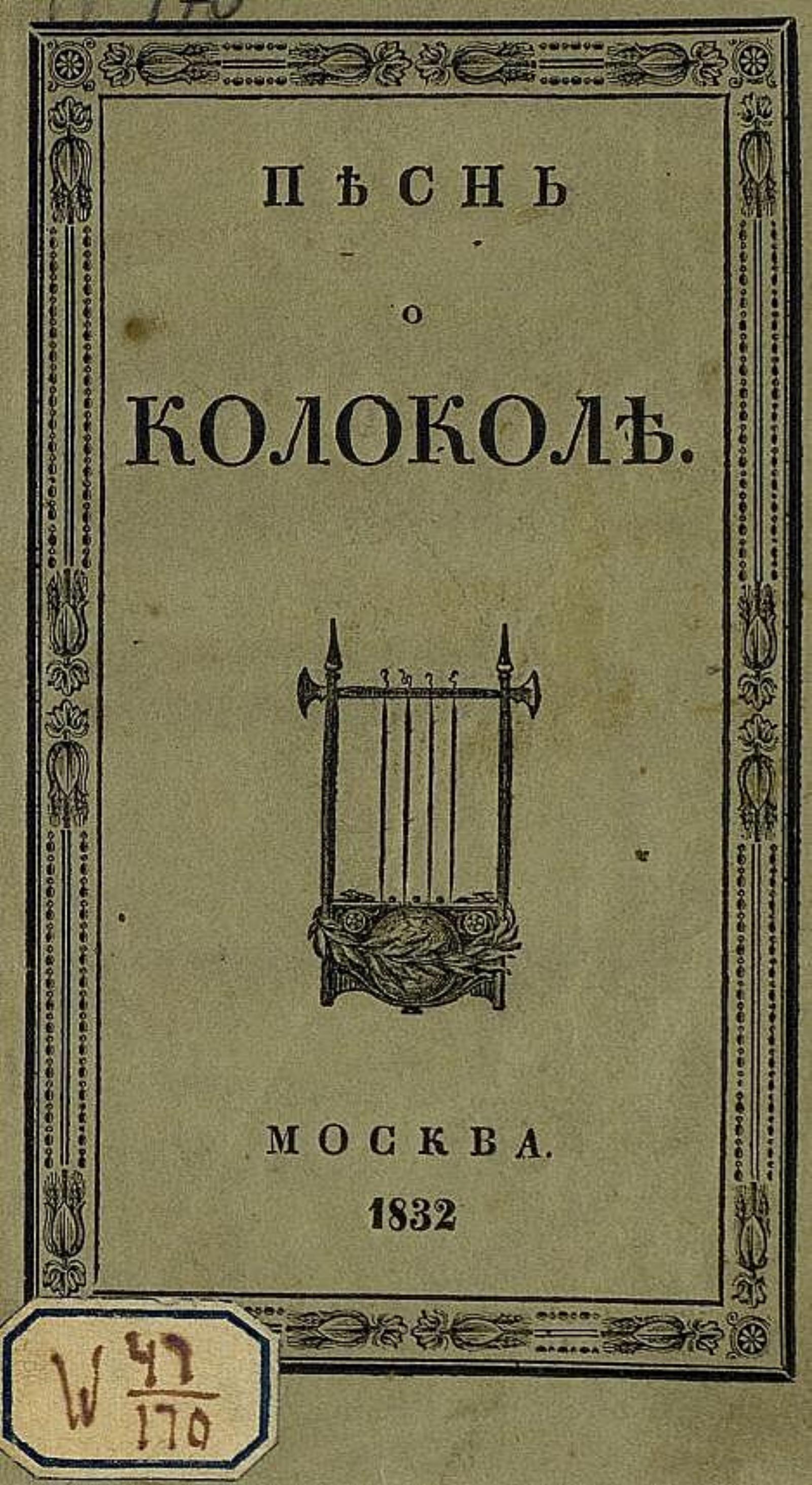 Шиллер, Иоганн Фридрих (1759–1805). Песнь о колоколе / [Творение Шиллера]. — Москва : тип. Лазаревых ин-та вост. яз., 1832. — 34 с.; 18.