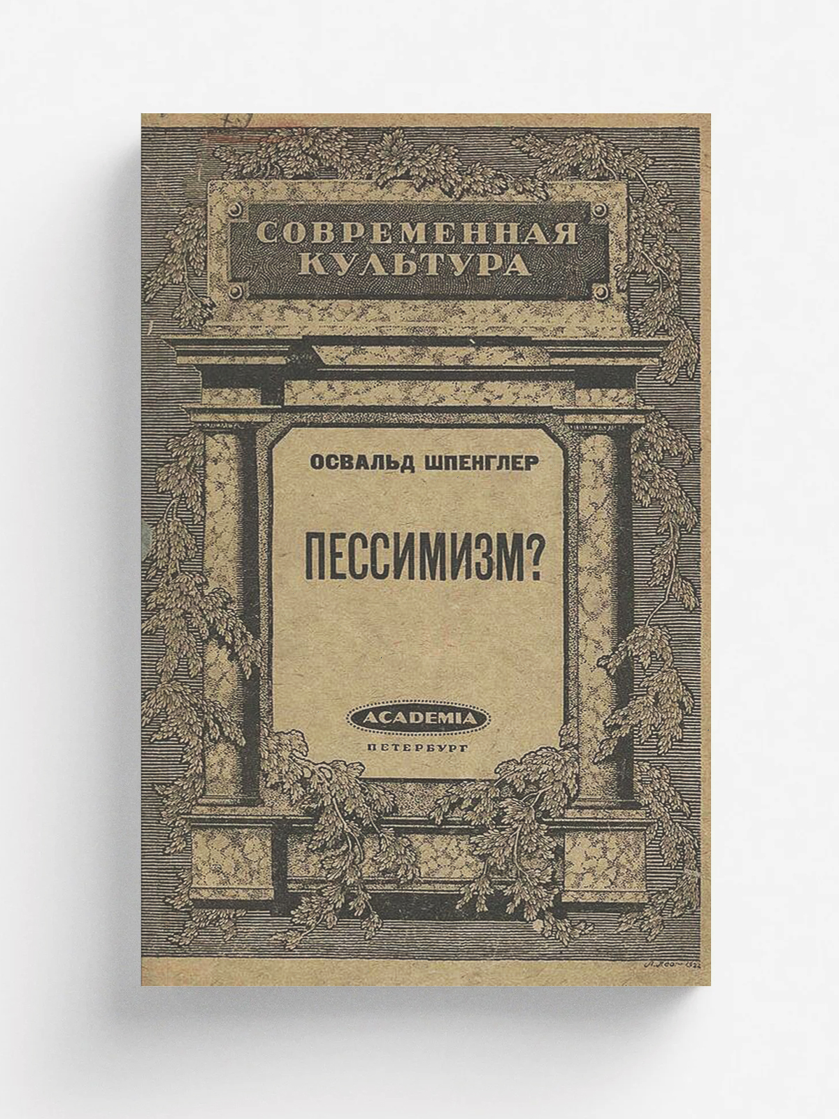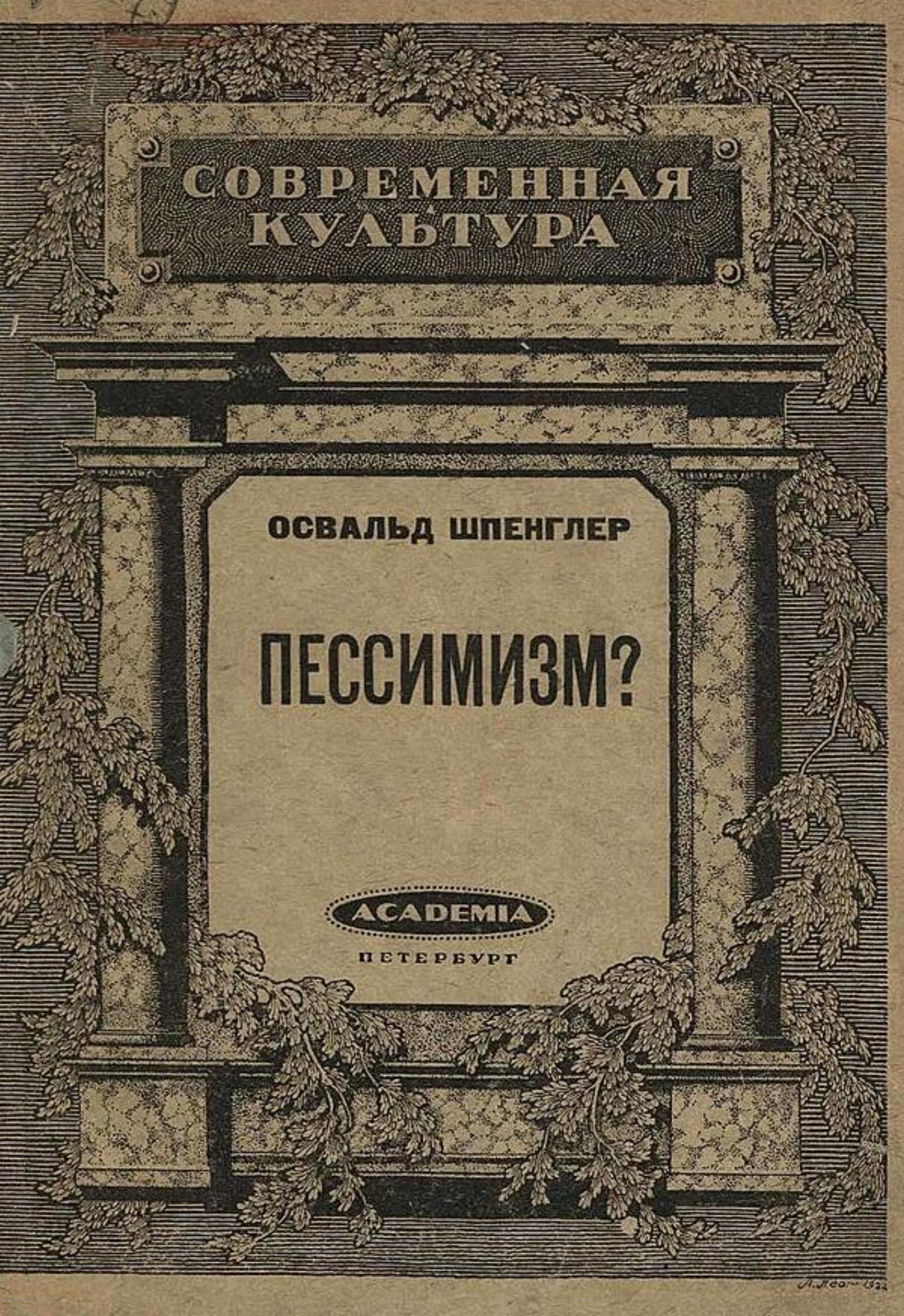 Шпенглер, Освальд. Пессимизм? / Освальд Шпенглер Пер. с нем. с предисл. проф. Германа Генкель. — Петербург : Academia, 1922. — 32 с.; 18 см. — (Современная культура).