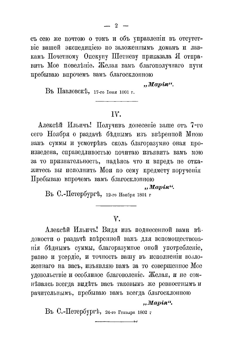 Письма государыни императрицы Марии Федоровны, августейшей основательницы и покровительницы Московской Мариинской больницы для бедных, к А. И. Муханову, строителю и первому почетному опекуну, управлявшему Больницею. 1800-1828. Издание членов Мариинского благотворительного общества при Мариинской больнице.
