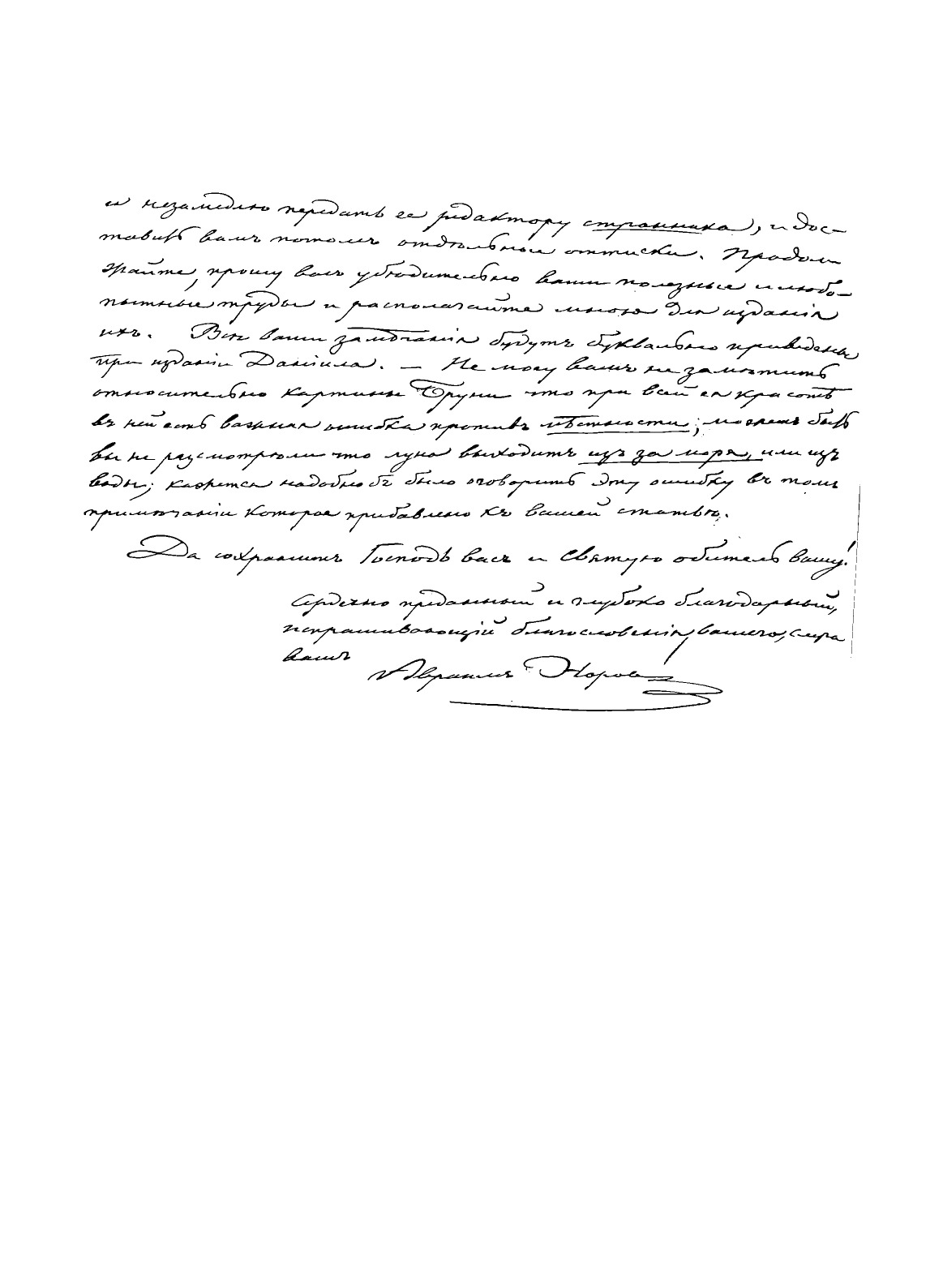 Сохранность: полнаяПодпись-автограф НороваАвраама СергеевичаПисьма из Павловска 1860 г. от 29 июля4 сентября23 ноября (лл.1-6); Письма 1861 г. от 4 января30 января12 февраля11 апреля9 июня16 июля10 мая16 августа30 октября(лл.7-28); Письма 1862 г.от 12 марта16 сентября (лл.29-32); Письма 1863 г. от 9 января2 марта12 июля(лл.33-38); Письма 1864 г. от 23 мая3 июля (лл.39-44); Письмо 1865 г. от 10 октября (лл.45-46)
