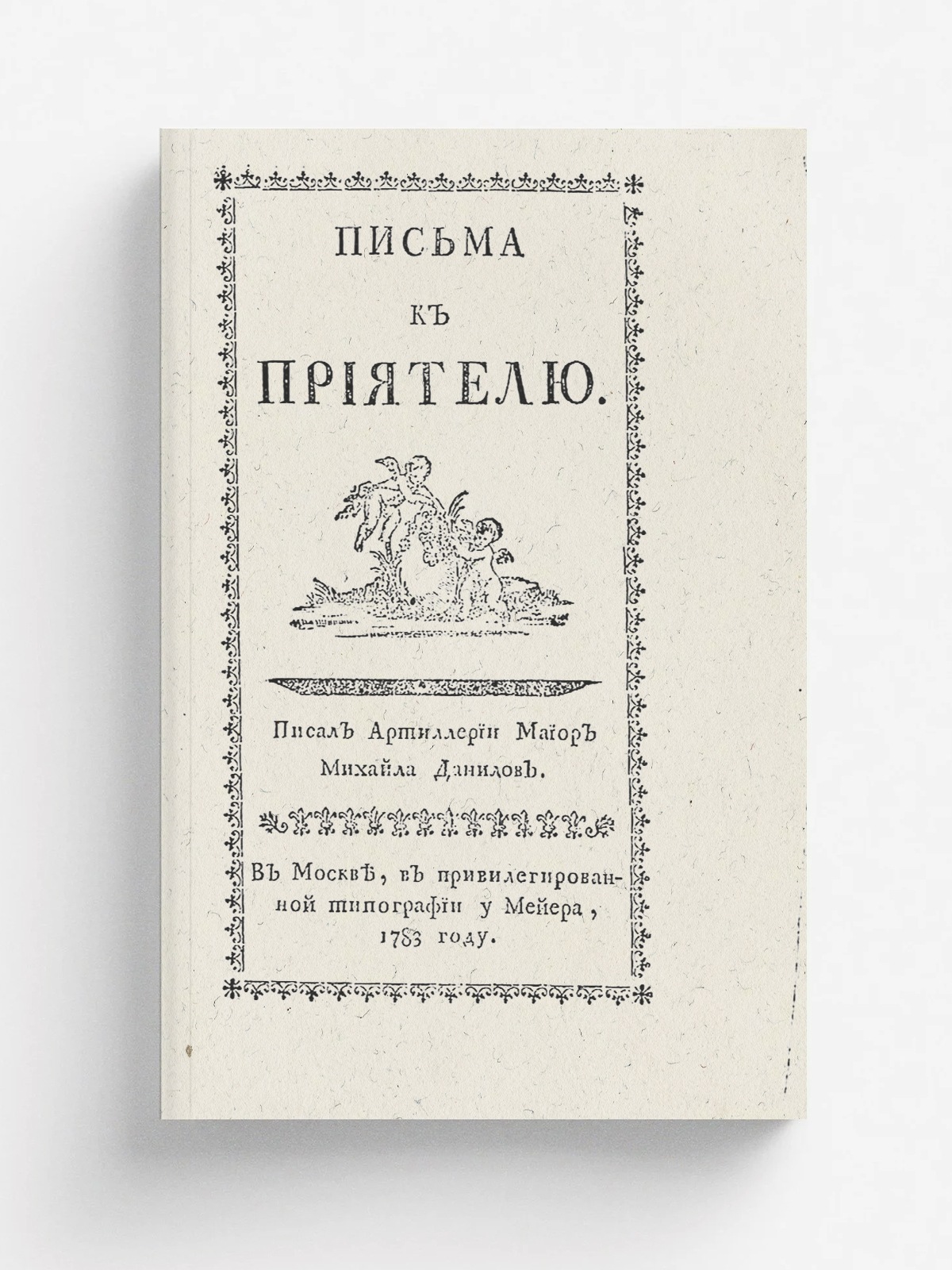Данилов, Михаил Васильевич (1722–1792). Письма к приятелю / Писал артиллерии майор Михайла Данилов. — Москва : Тип. Мейера, 1783. — 92, [1] с.; 8°.