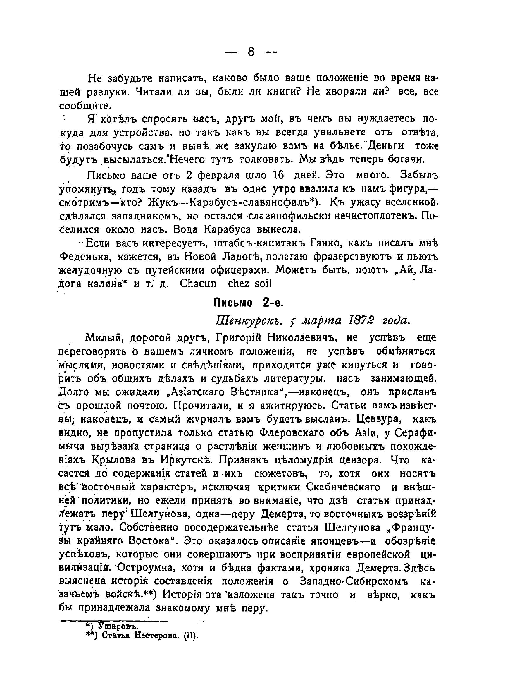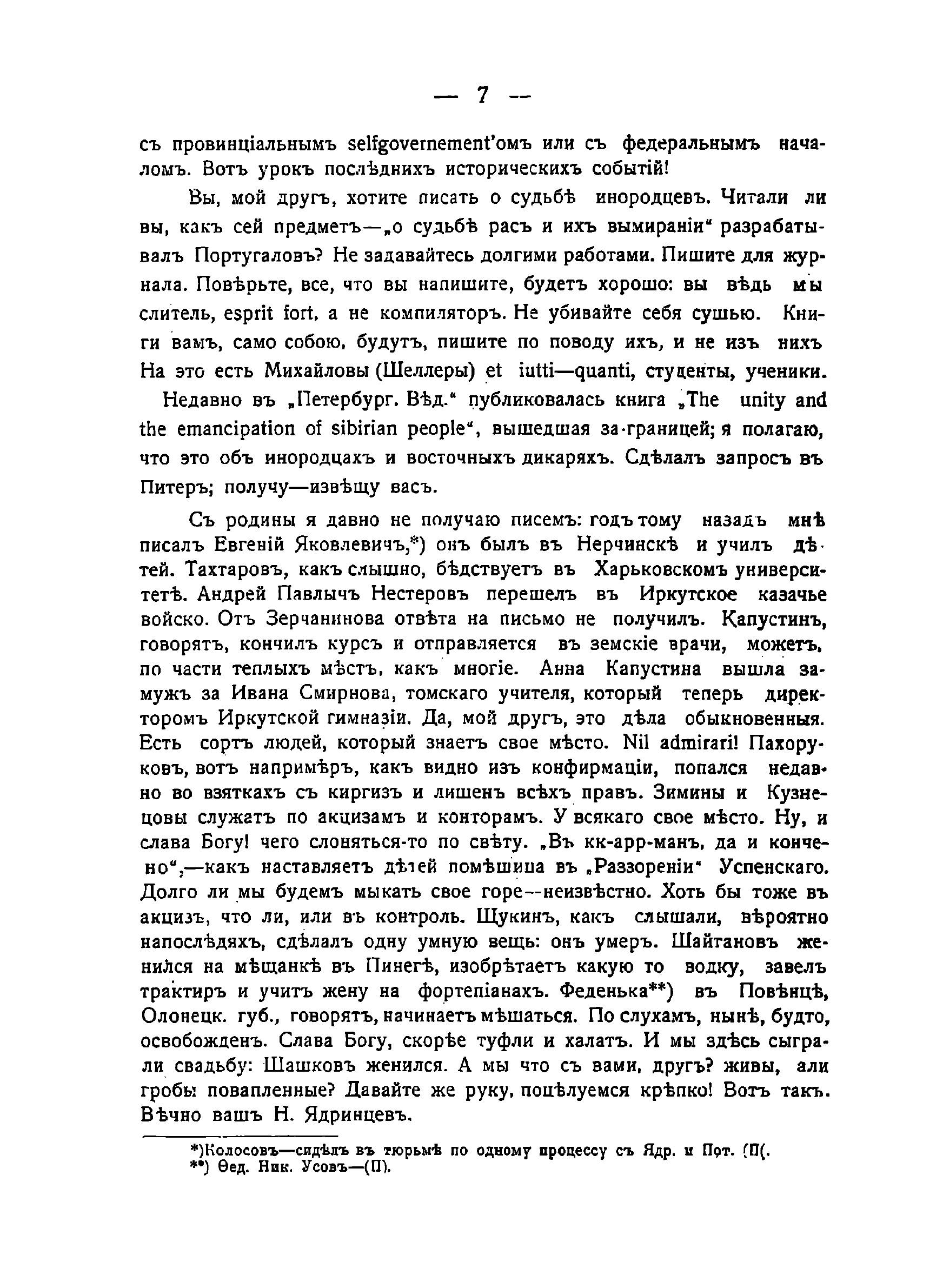 Письма Николая Михайловича Ядринцева к Г.Н. Потанину. Выпуск 1. С 20 февраля 1872 г. по 8 апреля 1873 года.