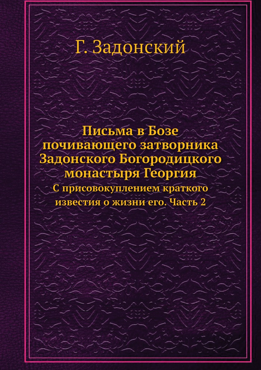 Печатная книга «Письма в Бозе почивающего затворника Задонского Богородицкого монастыря Георгия, С присовокуплением краткого известия о жизни его. Часть 2» в мягкой обложке, язык - русский. В книге 246 страниц, она напечатана на белой офсетной бумаге плотностью 80 г/м². Формат издания — 148x210 мм. Все книги аккуратно упаковываем в прочный трёхслойный непрозрачный картонный конверт.