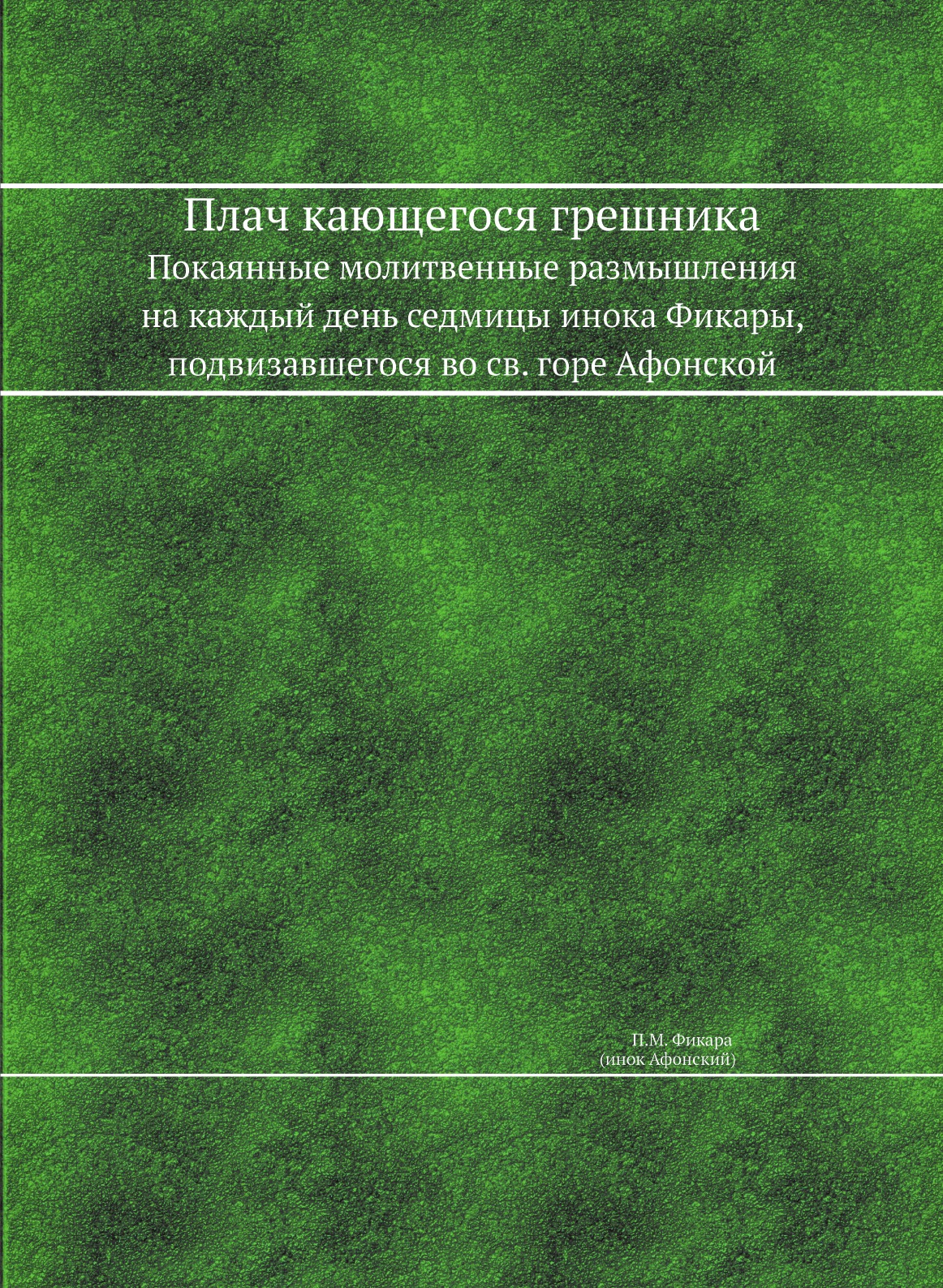 Печатная книга «Плач кающегося грешника, Покаянные молитвенные размышления на каждый день седмицы инока Фикары, подвизавшегося во св. горе Афонской» в мягкой обложке, язык - русский. В книге 98 страниц, она напечатана на белой офсетной бумаге плотностью 80 г/м². Формат издания — 205x280 мм. Все книги аккуратно упаковываем в прочный трёхслойный непрозрачный картонный конверт.