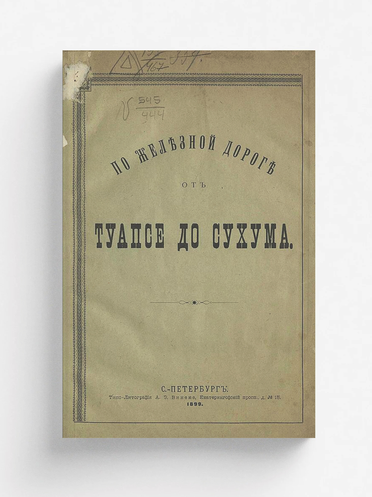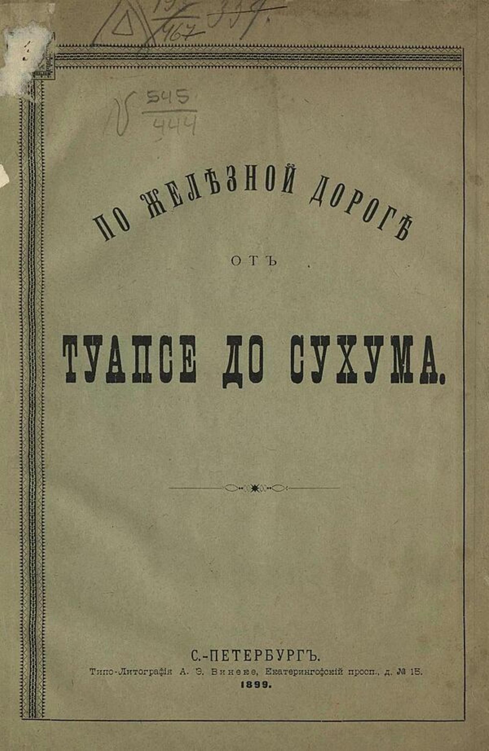 Гартман, Рафаил Карлович. По железной дороге от Туапсе до Сухума / [Р. фон-Гартман]. — Санкт-Петербург : типо-лит. А. Э. Винеке, 1899. — [2], VIII, 53 с., 1 л. карт. : ил.; 27.