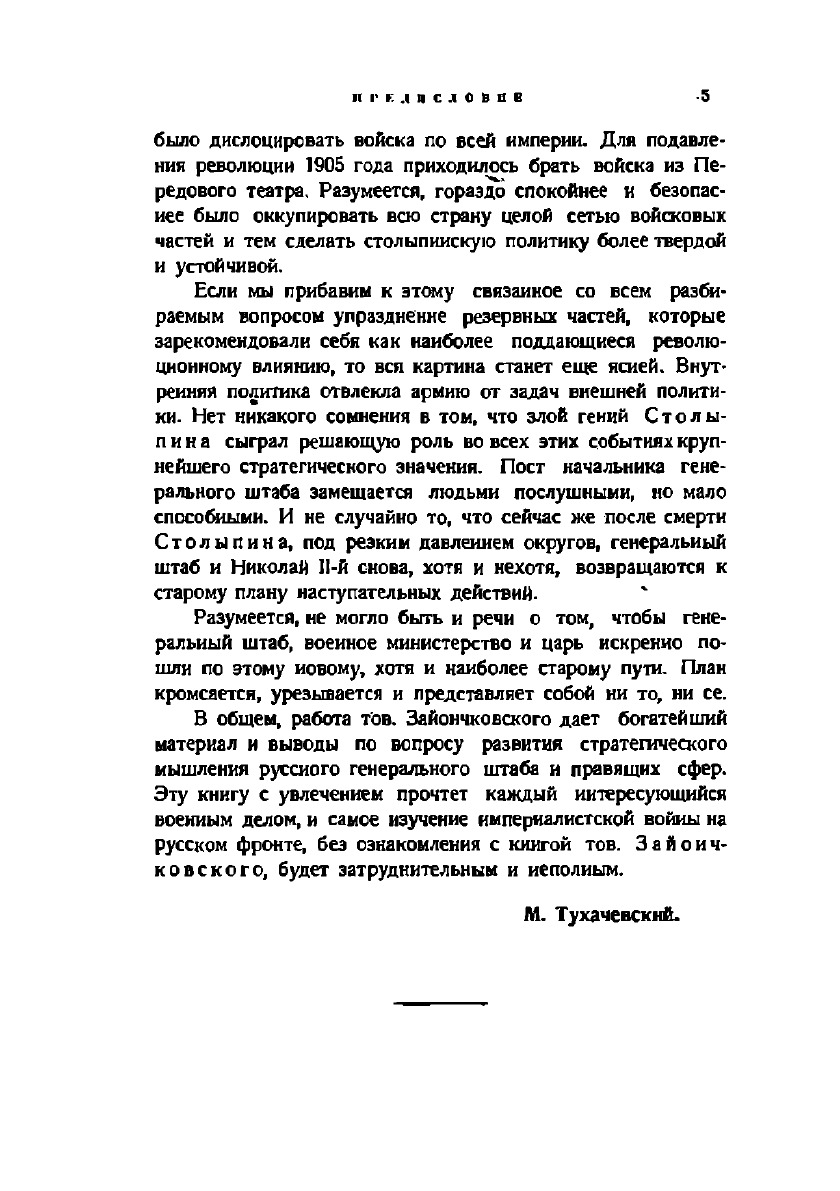 Из предисловия: "Мы имеем немного военно-научных работ по империалистской войне вполне самостоятельных и серьезно критических. В этом отношении предлагаемая книга тов. Зайончковского является тем редким исключением, которое не может не вызвать радости у каждого военно-мыслящего человека. Предлагаемая вниманию читателя настоящая работа, состоящая из описания по архивным материалам планов России перед войной 1914 года и отделов по подготовке к войне, исполнена по инициативе Военно-Исторического Отдела Штаба РККА. "