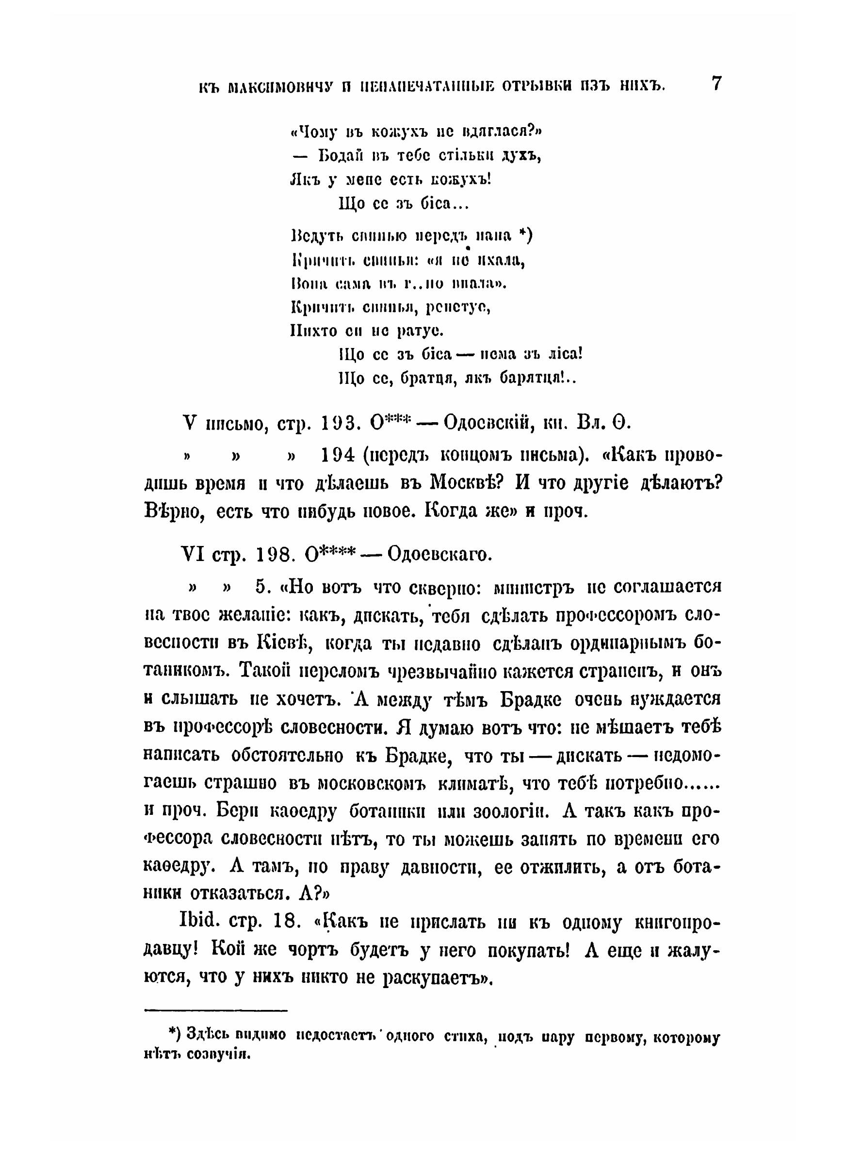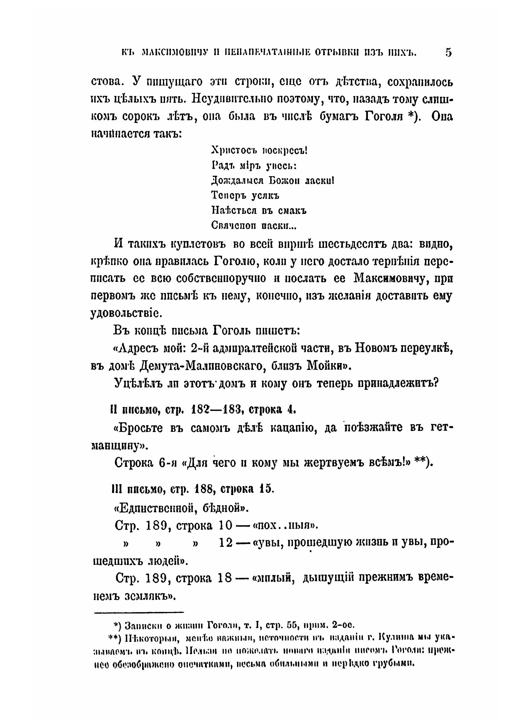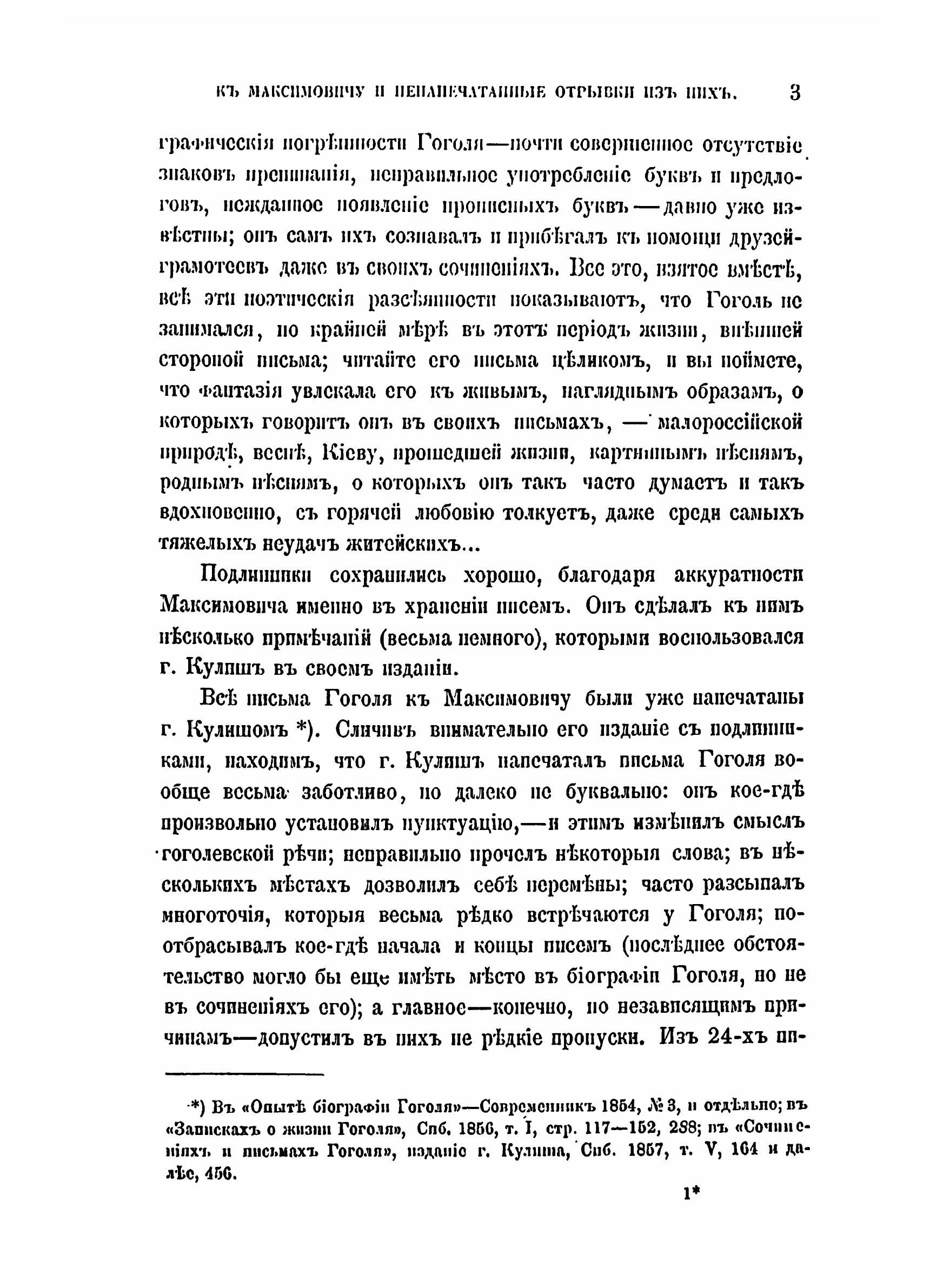 Подлинники писем Гоголя к Максимовичу напечатанные отрывки из них.