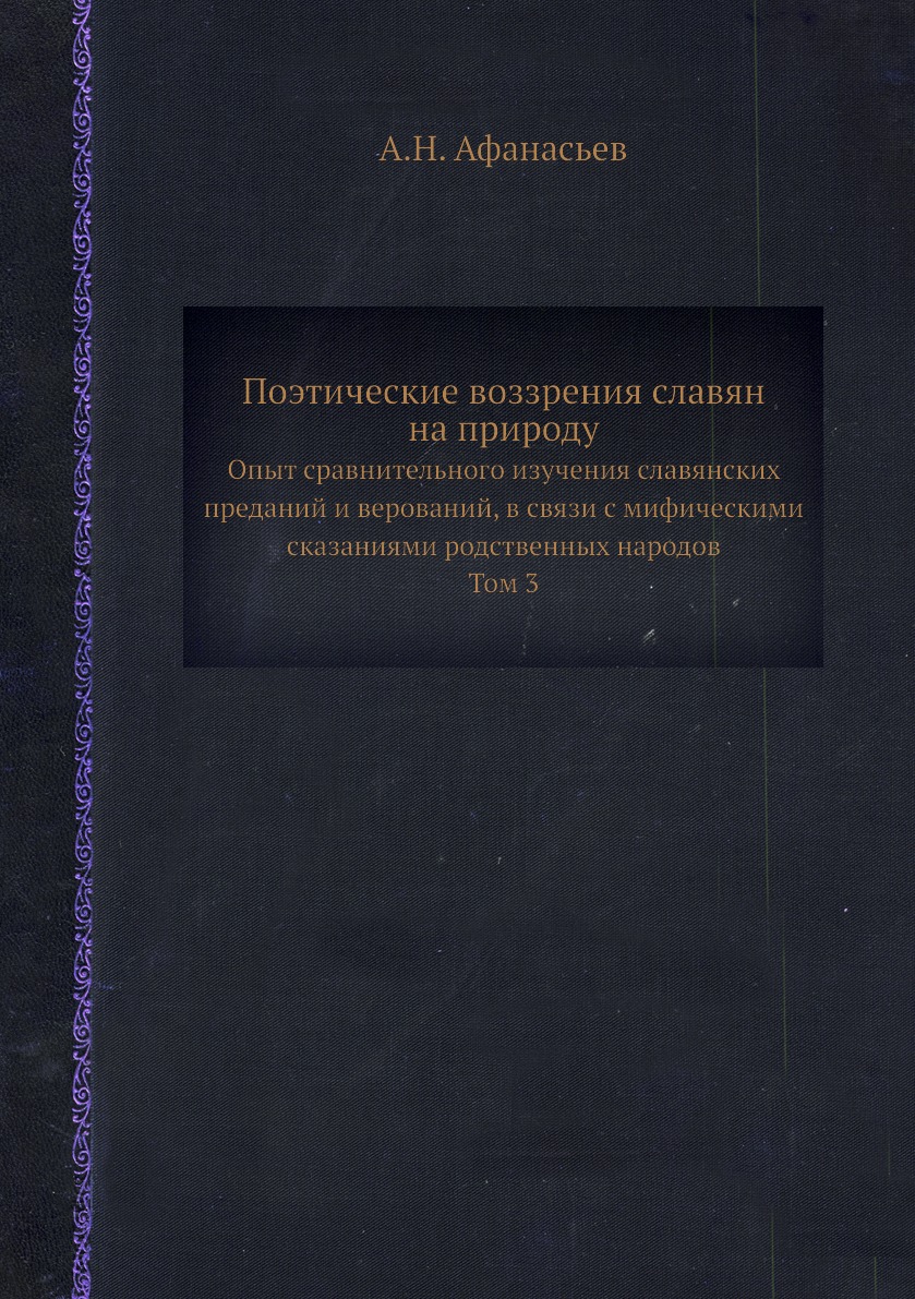 Итогом многолетнего исследовательского опыта историка и фольклориста Афанасьева А. Н. (1826-1871) явились "Поэтические воззрения славян на природу" - фундаментальный труд, посвященный историко-филологическому анализу языка и фольклора славян и связи с языком и фольклором других индоевропейских народов. Его труд до сих пор не превзойден в мировой науке о фольклоре. Книга историка и фольклориста Афанасьева А. Н. (1826-1871) выявляет связи языка и преданий, более того, воскрешает основы русского мышления, что особенно важно сейчас, когда язык и мышление русского человека изуродованы газетными штампами, блатным жаргоном и сленгом всякого рода, замусорены иностранными словами.