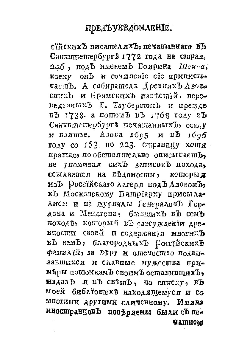 Поход боярина и большаго полку воеводы Алексея Семеновича Шеина к Азову, взятие сего и Лютика города и торжественное оттуды с победоносным воинством возвращение в Москву : С подробным описанием всех военнных и торжественных произшествий и с имянным списко