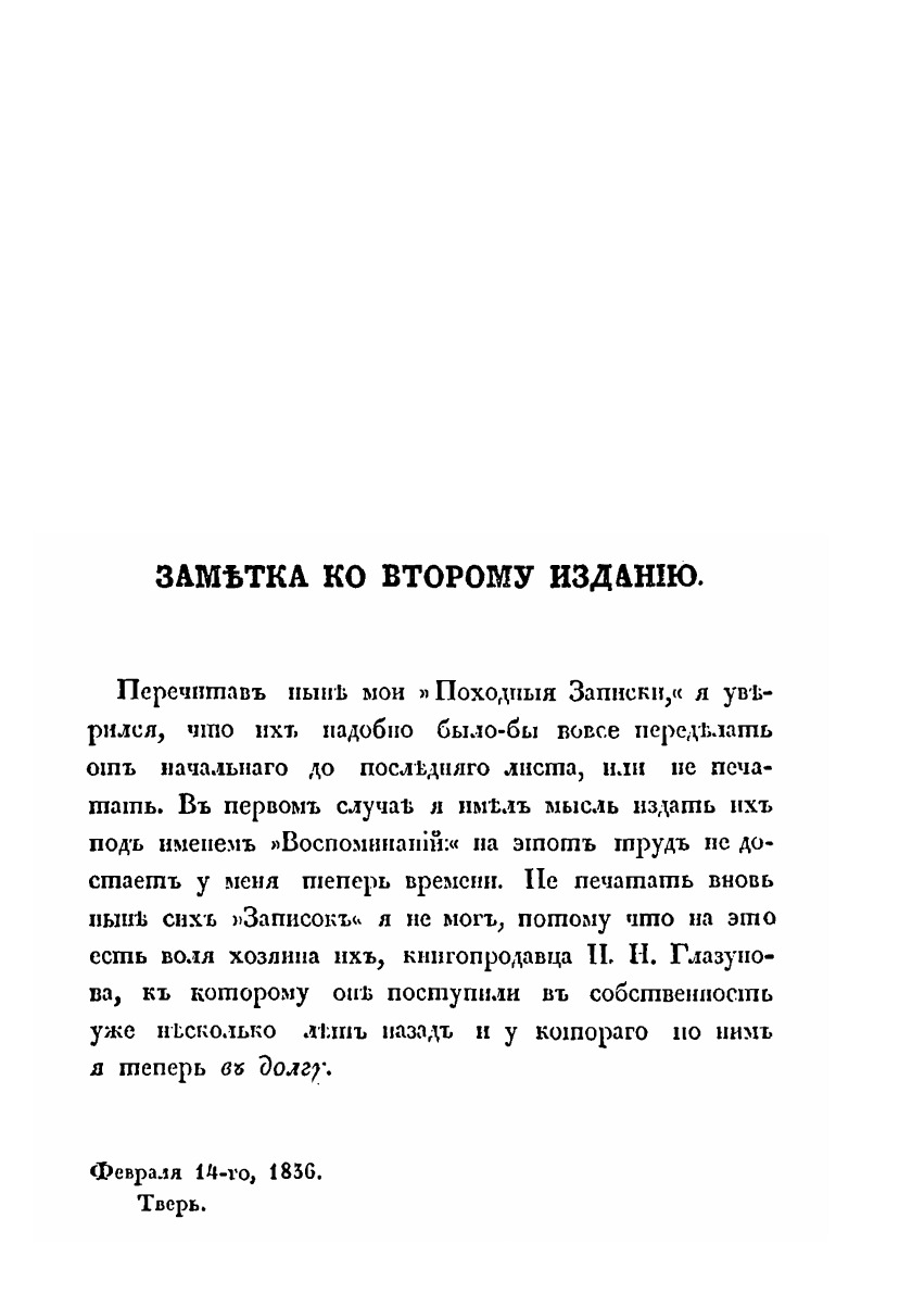 Эта книга — репринт оригинального издания (издательство "Москва, тип. Н. Степанова", 1836 год), созданный на основе электронной копии высокого разрешения, которую очистили и обработали вручную, сохранив структуру и орфографию оригинального издания. Редкие, забытые и малоизвестные книги, изданные с петровских времен до наших дней, вновь доступны в виде печатных книг.