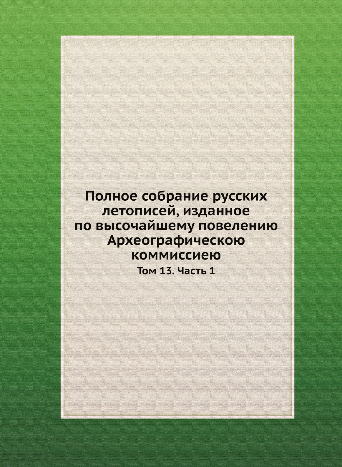 Печатная книга «Полное собрание русских летописей, изданное по высочайшему повелению Археографическою коммиссиею, Том 13. Часть 1» в мягкой обложке, язык - русский. В книге 309 страниц, она напечатана на белой офсетной бумаге плотностью 80 г/м². Формат издания — 205x280 мм. Все книги аккуратно упаковываем в прочный трёхслойный непрозрачный картонный конверт.