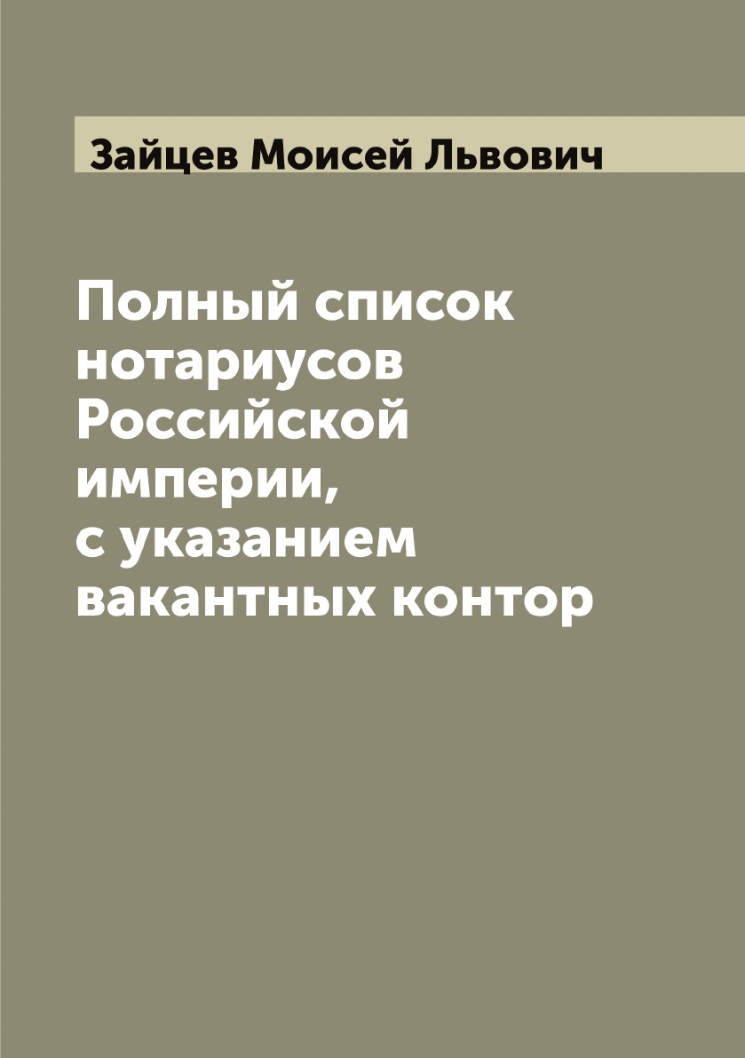 Печатная книга «Полный список нотариусов Российской империи, с указанием вакантных контор» в мягкой обложке, язык - русский. В книге 102 страниц, она напечатана на белой офсетной бумаге плотностью 80 г/м². Формат издания — 148x210 мм. Все книги аккуратно упаковываем в прочный трёхслойный непрозрачный картонный конверт.