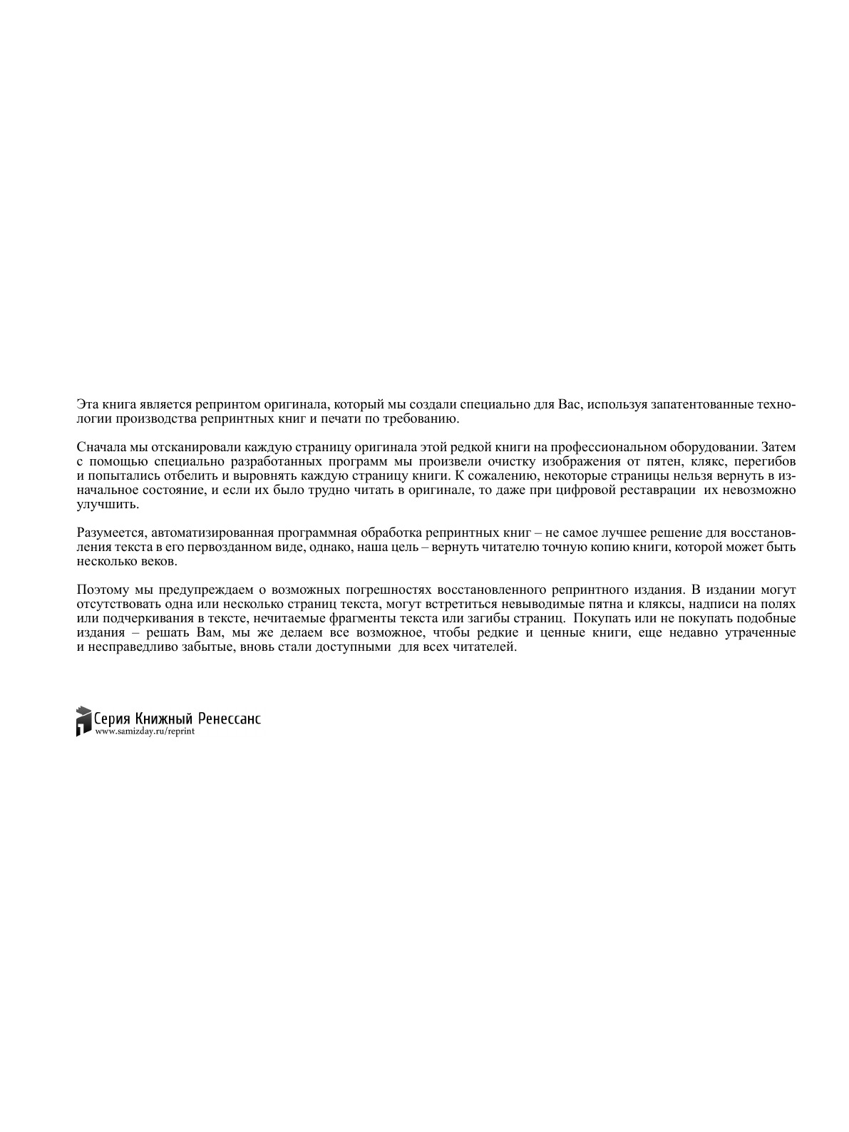Эта книга — репринт оригинального издания (издательство "Санкт-Петербург: Освобождение", 1907 год), созданный на основе электронной копии высокого разрешения, которую очистили и обработали вручную, сохранив структуру и орфографию оригинального издания. Редкие, забытые и малоизвестные книги, изданные с петровских времен до наших дней, вновь доступны в виде печатных книг.