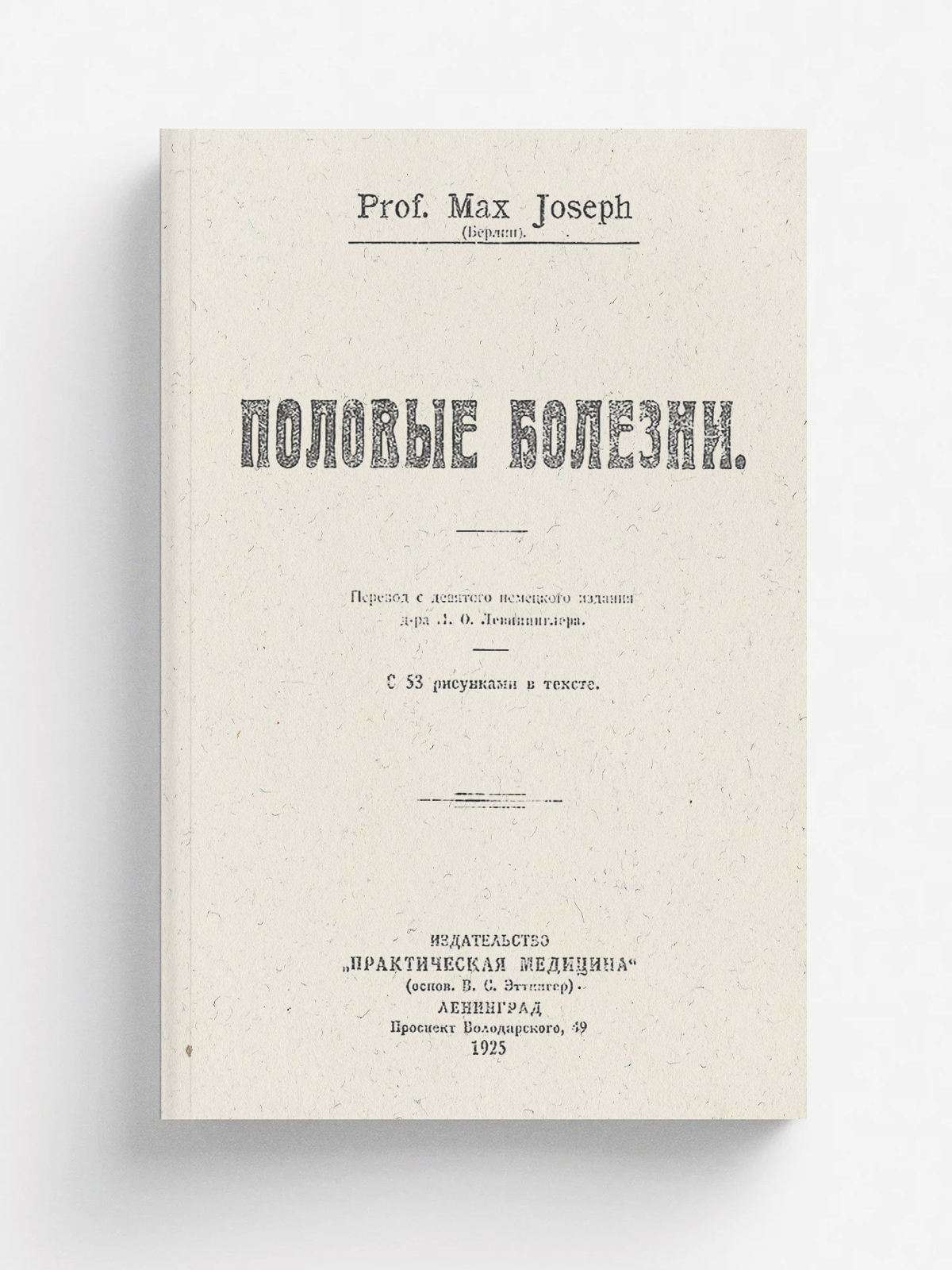 Джозеф, Макс. Половые болезни [Текст] : с 53 рисунками в тексте / Prof. Max Joseph (Берлин) ; пер. с девятого немецкого издания д-ра Л. О. Левинциглера. — Ленинград : Практическая медицина, 1925. — 192, [2] с.; 25 см.