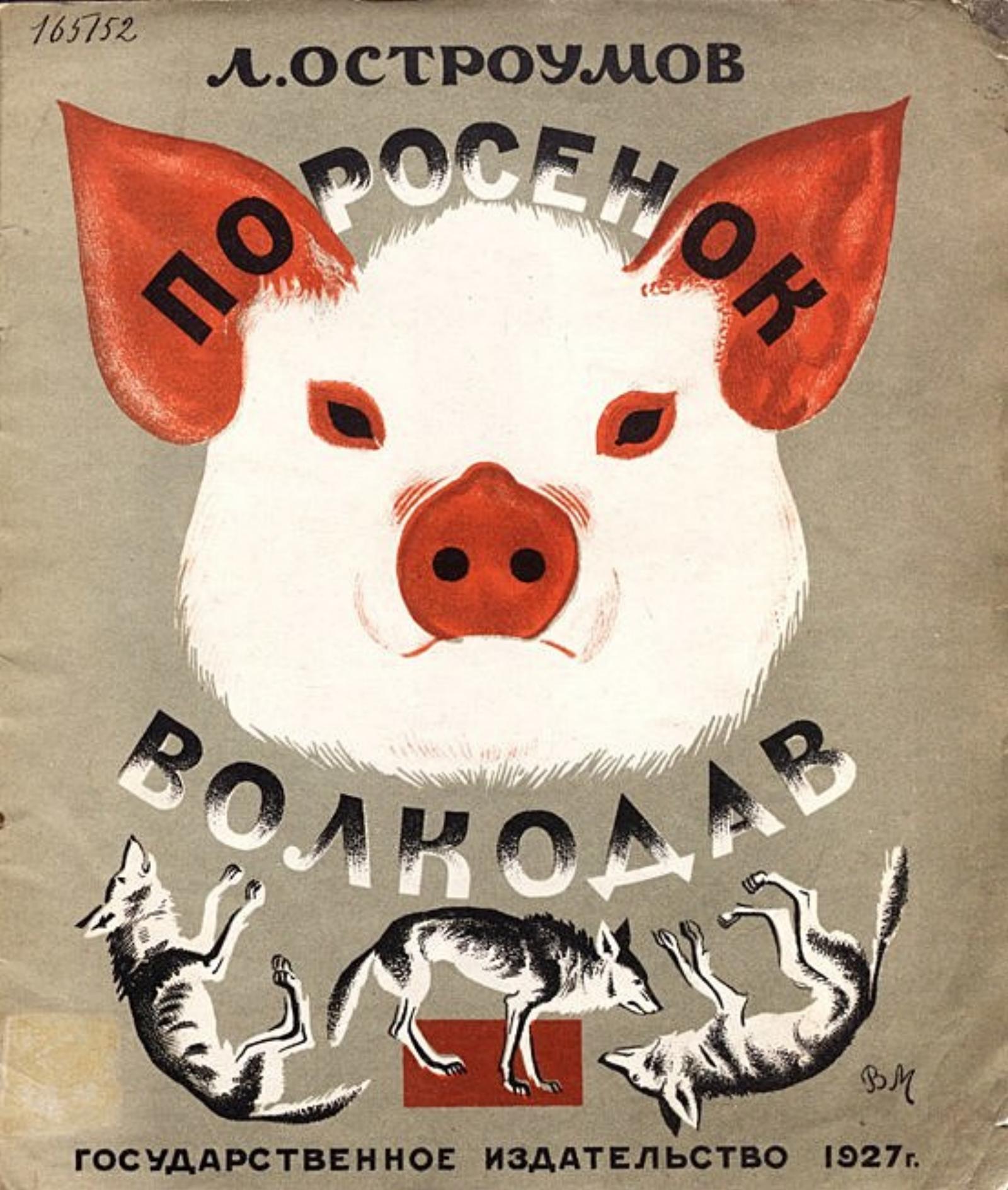 Остроумов, Лев Евгениевич. Поросенок волкодав : [Стихи для детей] / Л. Остроумов ; Обложка: В. М[айзелис] ; Иллюстрации: М. Милашевский. — [Москва] : Гос. изд-во, 1927 (1-я Образцовая тип.). — 16 с. : красочн. ил.; 23×19 см.