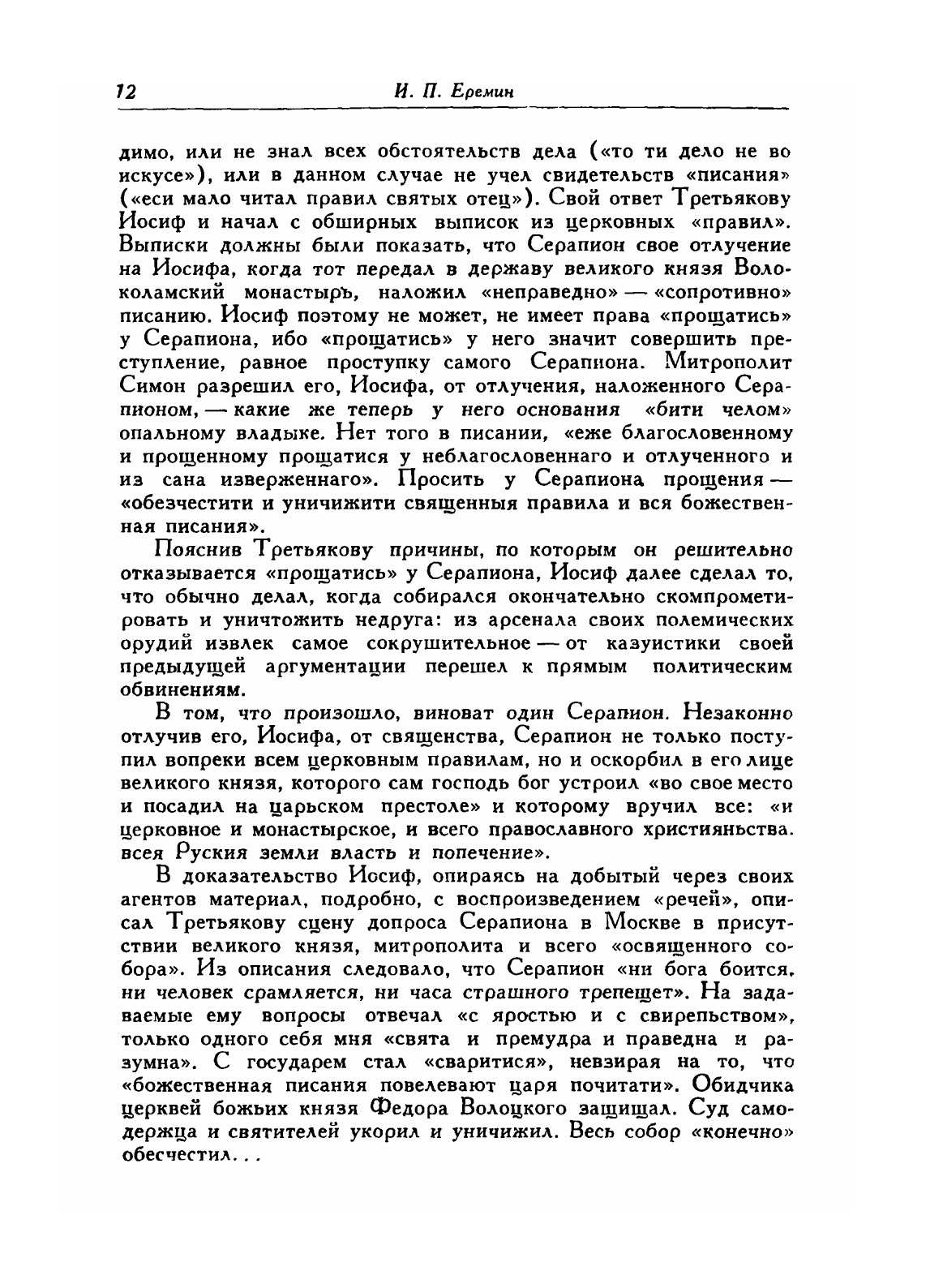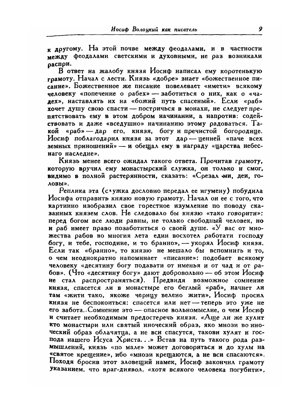 Иосиф Волоцкий (1439-1515) - известный церковный деятель, игумен Волоколамского монастыря. Наряду со своей обширной церковной и политической деятельностью, он известен и как талантливый писатель, автор множества сочинений, посвящённых злободневным вопросам, волновавшим Россию в конце 15 -нач.16 века. Его литературные и полемические труды положили начало русской средневековой публицистике. В данном издании представлены послания Иосифа Волоцкого, адресованные монахам, «вельможам», епископам и князьям. В «Приложении» опубликован «Устав» Иосифа Волоцкого и некоторые другие сочинения. Текст, комментарии и археографические обзоры подготовлены А.А.Зиминым и Я.С.Лурье.