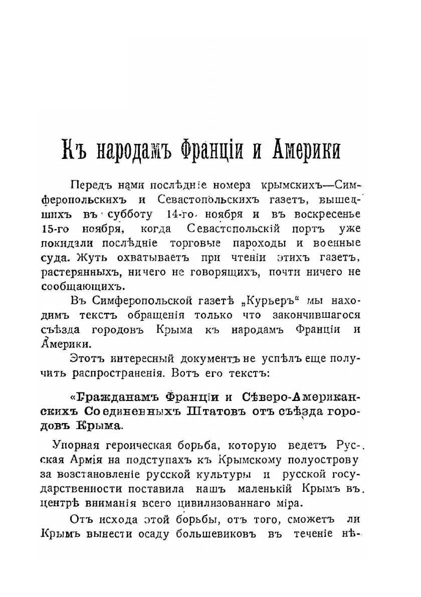 События в Крыму в течение последней недели, как громом поразили всех своей потрясающей неожиданностью. Все официальные и официозные сообщения, все заявления высокоавторитетных ответственных представителей власти военной и гражданской, политических и общественных деятелей - все это было проникнуто радостным оптимизмом. И вдруг свершилось то, что трудно было с такой молниеносностью ожидать.