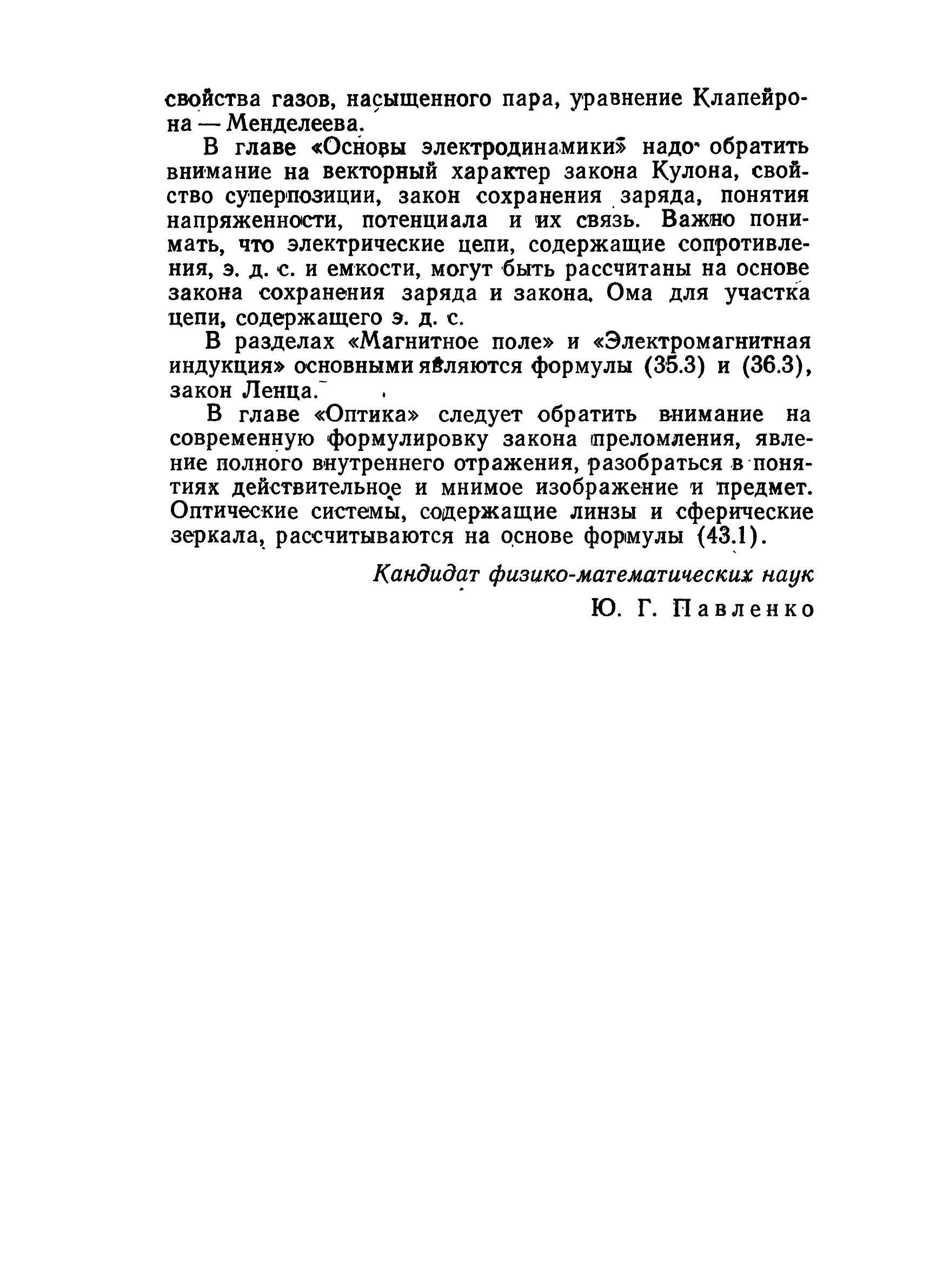 Пособие содержит достаточно полное изложение курса физики, изучаемого в средней школе. Важная особенность книги состоит в том, что содержание основных законов и уравнений, физики иллюстрируется на основе удачно подобранных примеров и задач. Разбор этих примеров (их более двухсот) позволяет овладеть эффективными методами решения задач. Выбор материала в «Пособии» определяется программой по физике для средней школы, пособие по физике предназначено для школьников 8—10 классов и учащихся подготовительных отделений.
