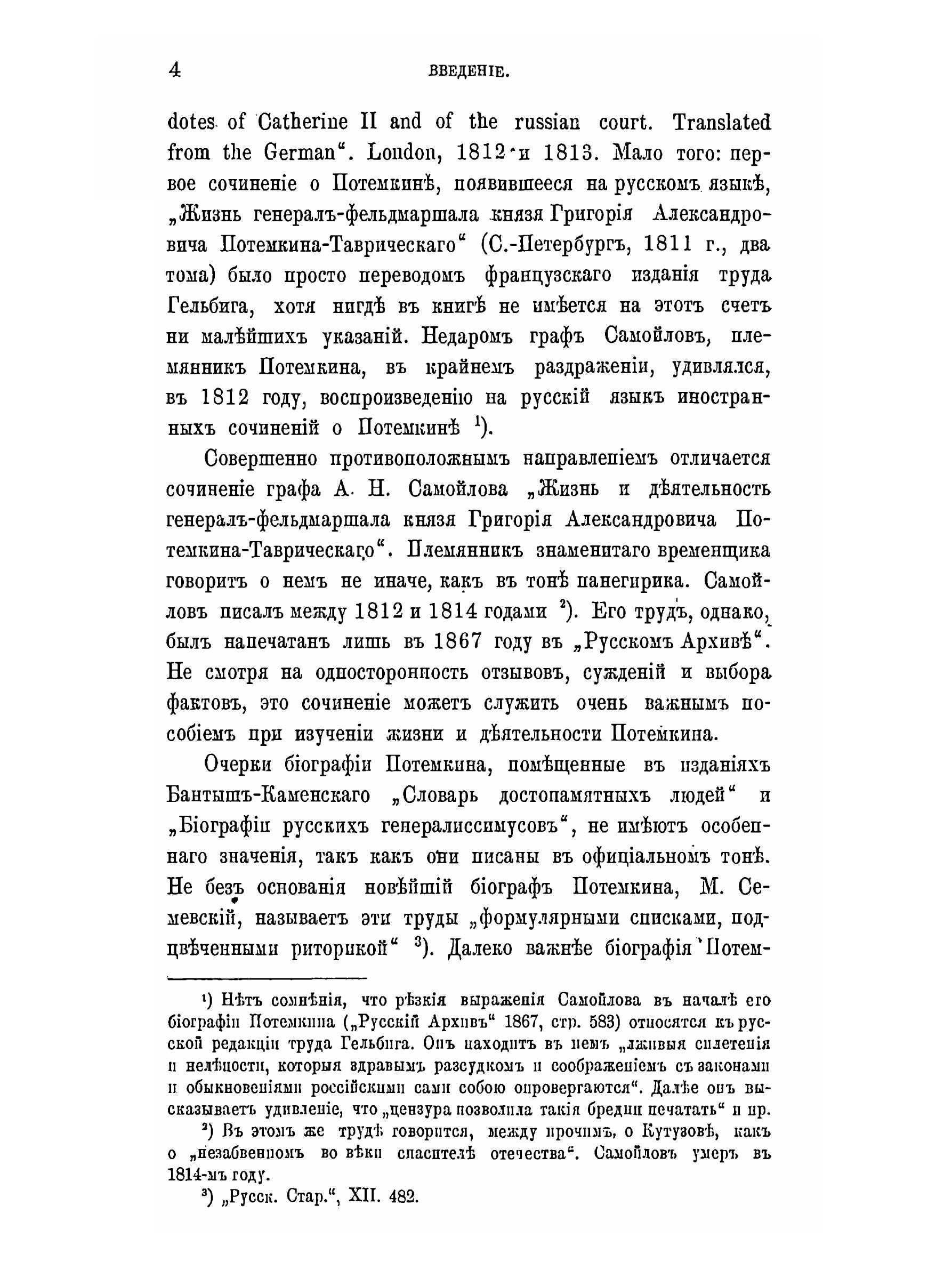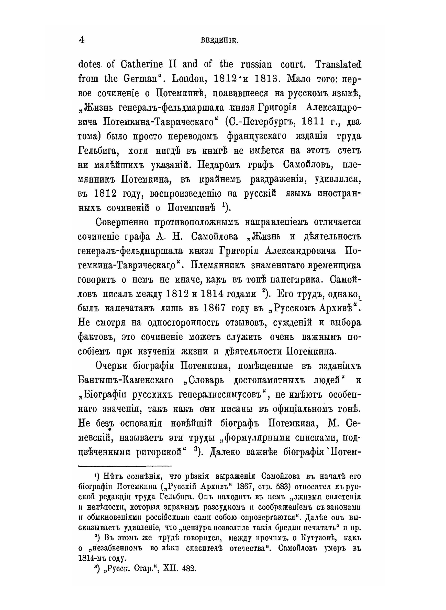 Основное внимание в своей книге автор уделил личным отношениям Екатерины II и Светлейшего князя, важнейшим событиям его биографии. Был проанализирован широкий спектр мнений и оценок деятельности Г.Потемкина и сделаны общие выводы о восприятии его фигуры современниками и потомками. Личность этого неординарного человека, обладавшего многими талантами, способностями к наукам, блестящего военного и администратора заслужено привлекала внимание русских и зарубежных исследователей. Во введении автор представил краткий обзор публикаций о Светлейшем князе, которые начали выходить сразу после его кончины.