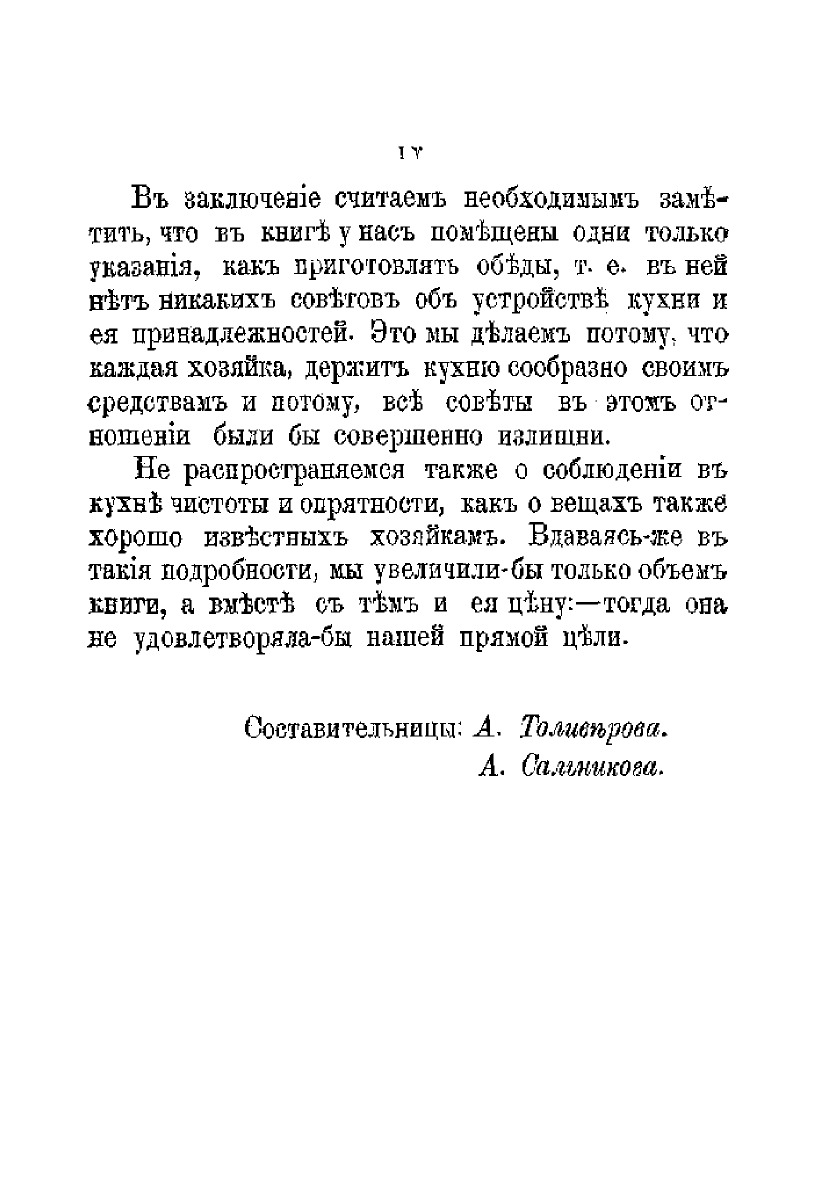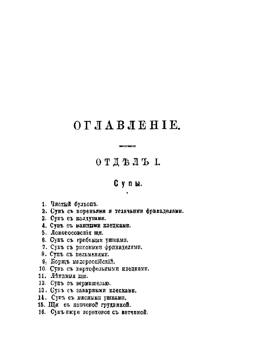 В книге находятся 477 блюд и 366 обедов, каждый из 4 блюд; объясняется, как приготовлять обеды, пасхи, куличи, варенья, соленья