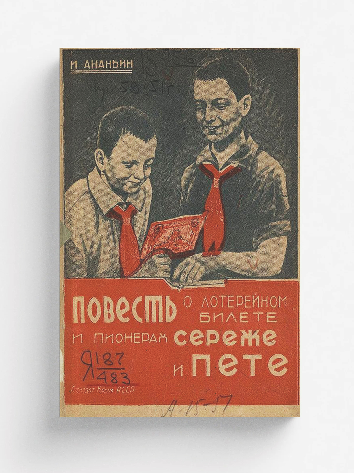 Ананьин, Иван. Повесть о лотерейном билете и пионерах Сереже и Пете / Иван Ананьин. — [Симферополь]: Госиздат Крым. АССР, 1934. — 30, [1] с. : ил.; 17 см.