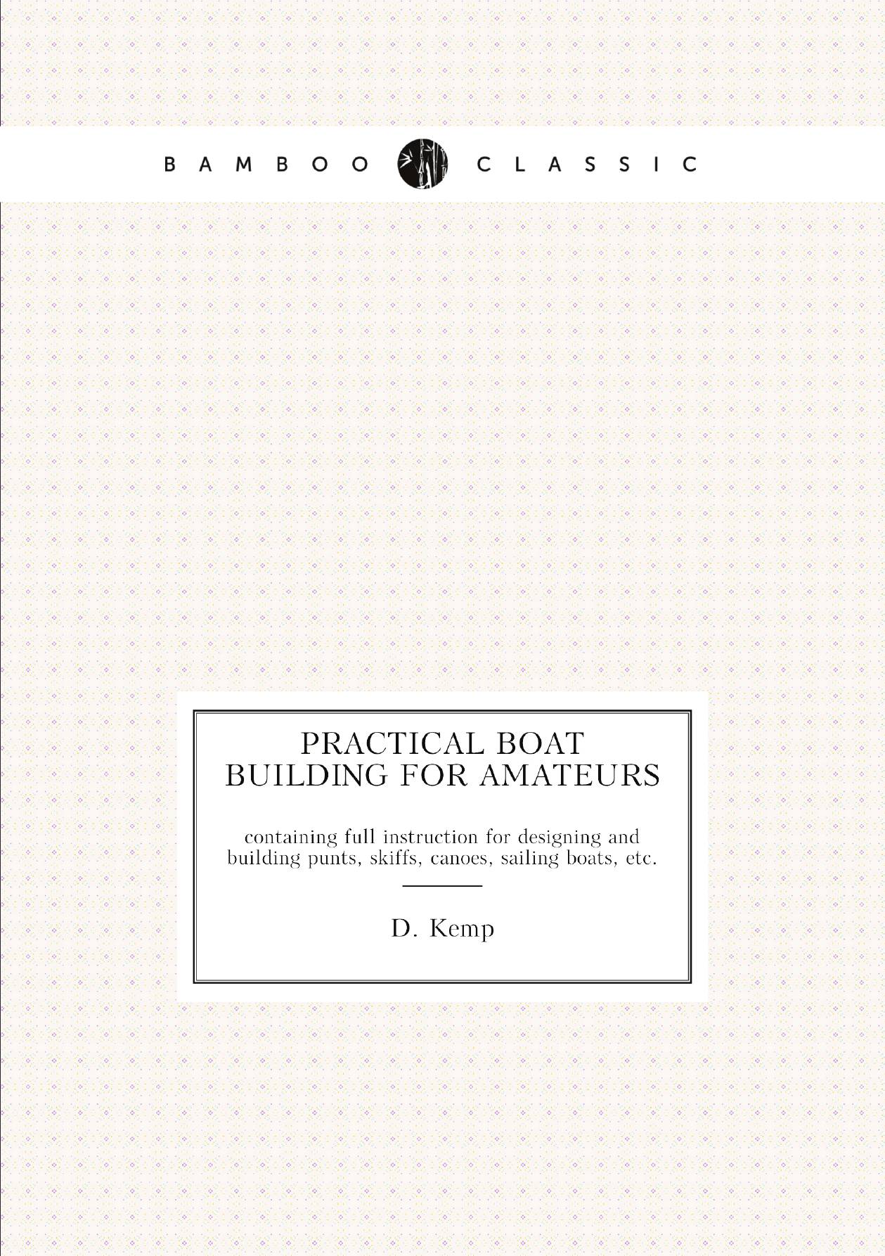 Печатная книга «Practical Boat Building for Amateurs, containing full instruction for designing and building punts, skiffs, canoes, sailing boats, etc.» в мягкой обложке, язык - английский. В книге 122 страниц, она напечатана на белой офсетной бумаге плотностью 80 г/м². Формат издания — 148x210 мм. Все книги аккуратно упаковываем в прочный трёхслойный непрозрачный картонный конверт.