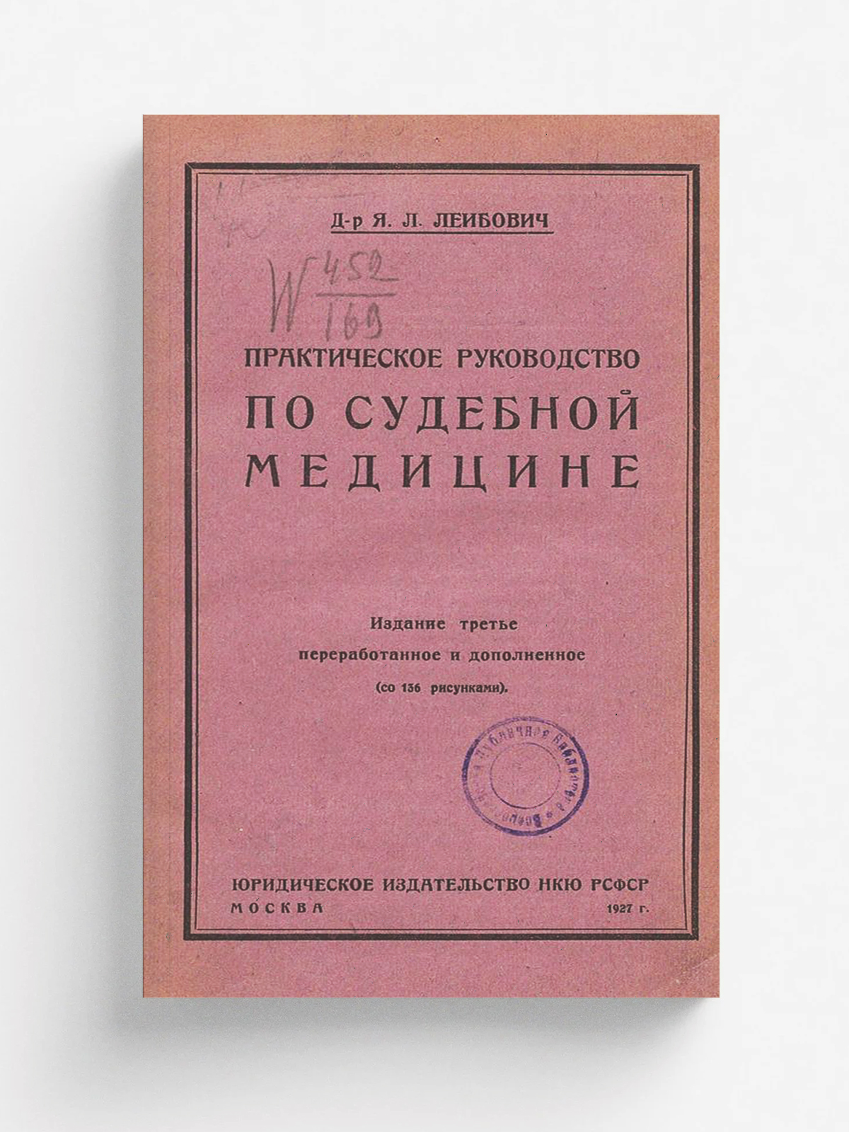 Лейбович, Яков Львович (1889–1941). Практическое руководство по судебной медицине (со 136 рисунками) / д-р Я. Л. Лейбович. — 3-е изд., перераб. и доп. — Москва : Юридическое изд-во Наркомюста РСФСР, 1927. — 235, [1] с. : ил.; 23 см.