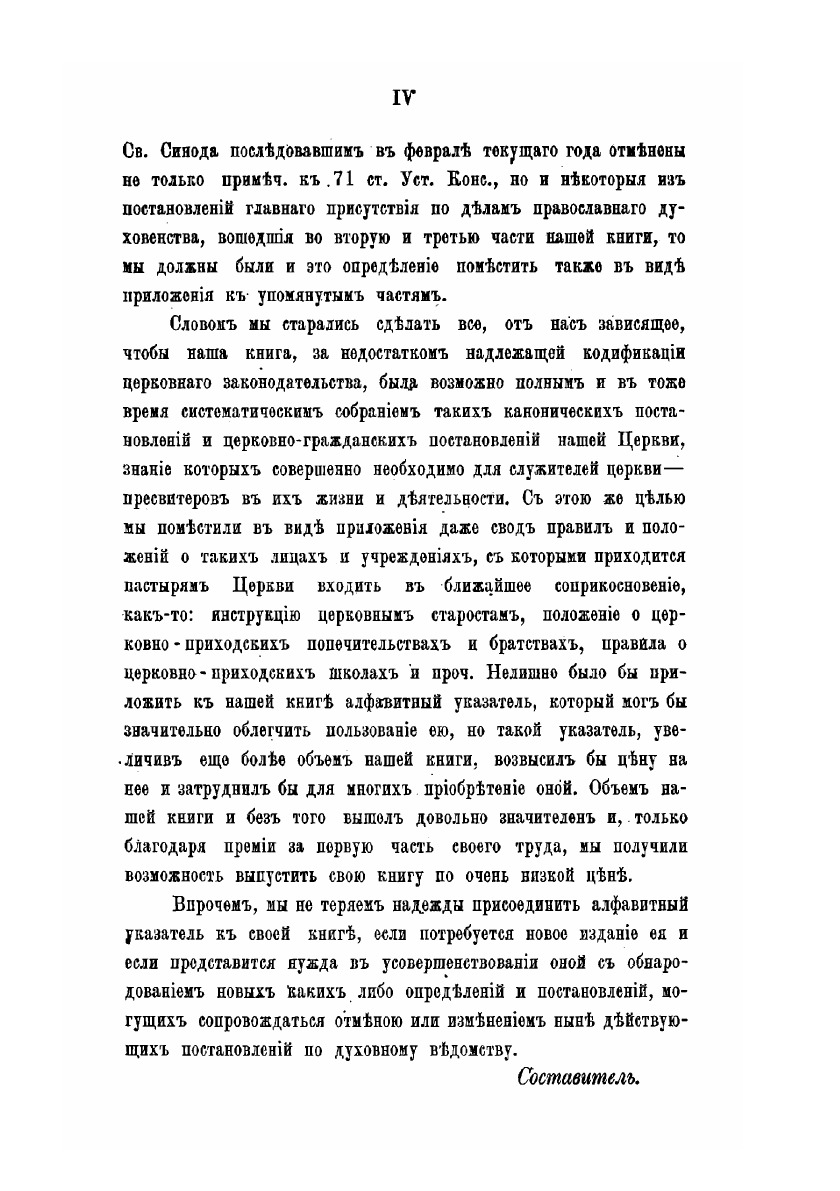 Полное и систематическое изложение канонических постановлений Христианской церкви и действующих церковно-гражданских постановлений Русской церкви относительно всех служебных прав и обязанностей пастырских, как-то: учительства, воспитания или духовного руководства, священнодействия, заведования церковною собственностью и церковного письмоводства. Репринтное издание по технологии print-on-demand с оригинала 1885 года