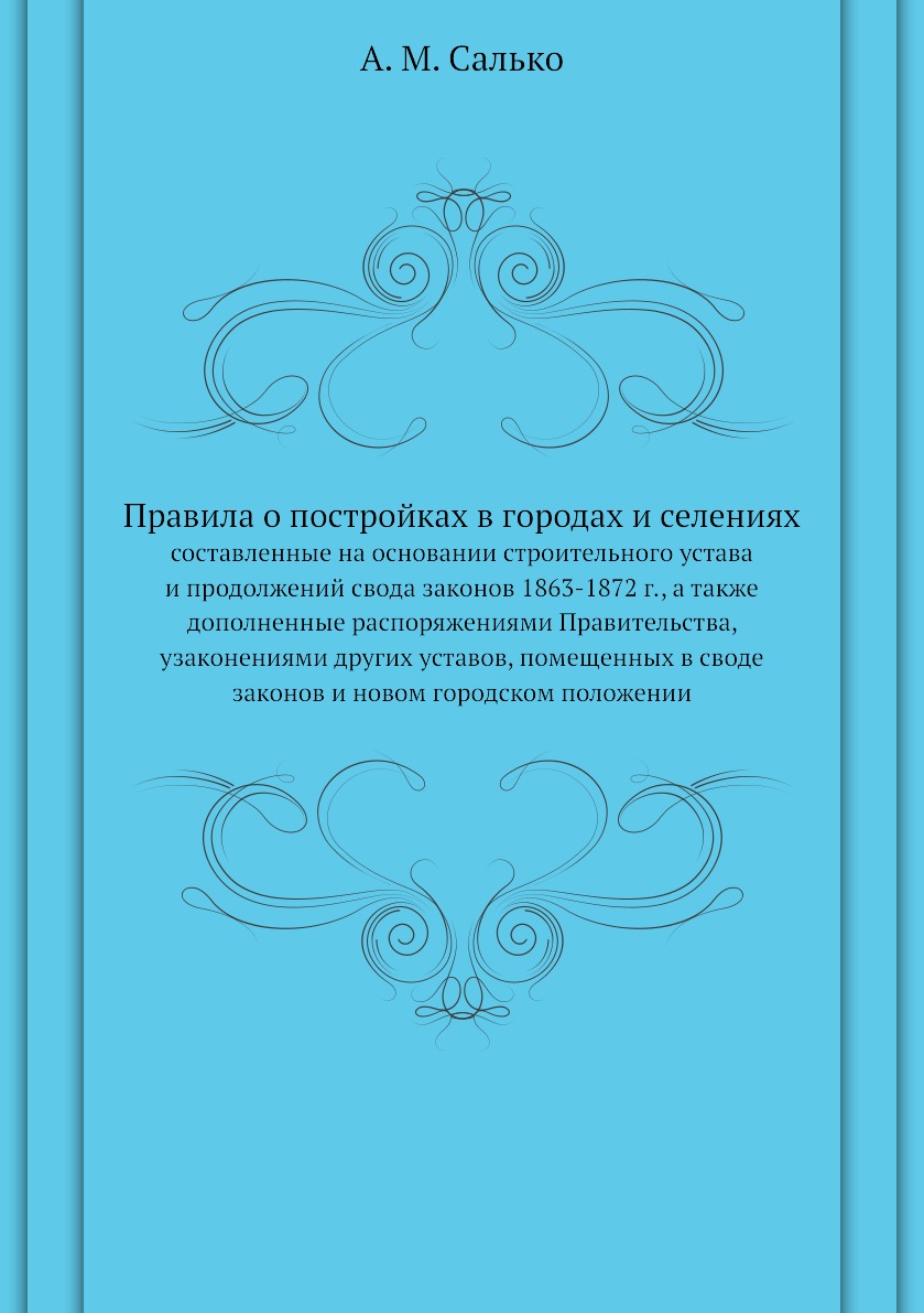 Справочная книга для городских и земских управ, нотариусов, архитекторов, мировых судей, полиций, волостных правлений, владельцев домов, фабрик и заводов. Строительные правила, изложенные в XII томе св. зак. (изд. 1857 года), по неполноте своей, требовали неоднократно дополнений и разъяснений Правительства. Затруднительность собрания сведений по этим дополнениям и разъяснениям, разбросанным в различных узаконениях, было причиной общего недовольства нашим строительным уставом.