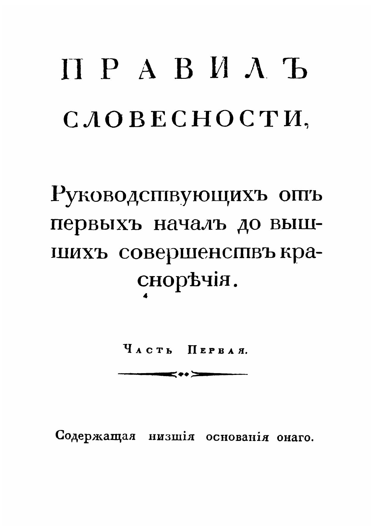 Наука, руководствующая человека к такому высокому совершенству, как способность говорить красно и прилично, должна быть особенным предметом общественного образования. Все народы преимущественно посвящали труды свои словесности; и те из них, которые достигали высокой степени красноречия, всегда почитались образованнейшими и просвещеннейшими народами. Практические советы, дошедшие до нас спустя сто лет, но актуальные и по сей день, по наставлениям которых можно и сейчас внести разнообразие в свою повседневную жизнь и отдать дань тому самому прошлому, где, как хочется верить, было и красиво, и чинно.
