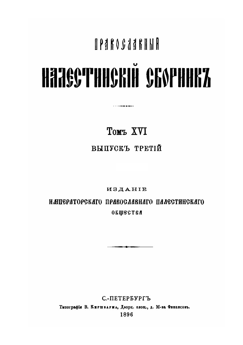 Православный Палестинский сборник. Том 16. Выпуск 48. Хождение Архимандрита Агрефенья обители Пресвятой Богородицы около 1370 года.