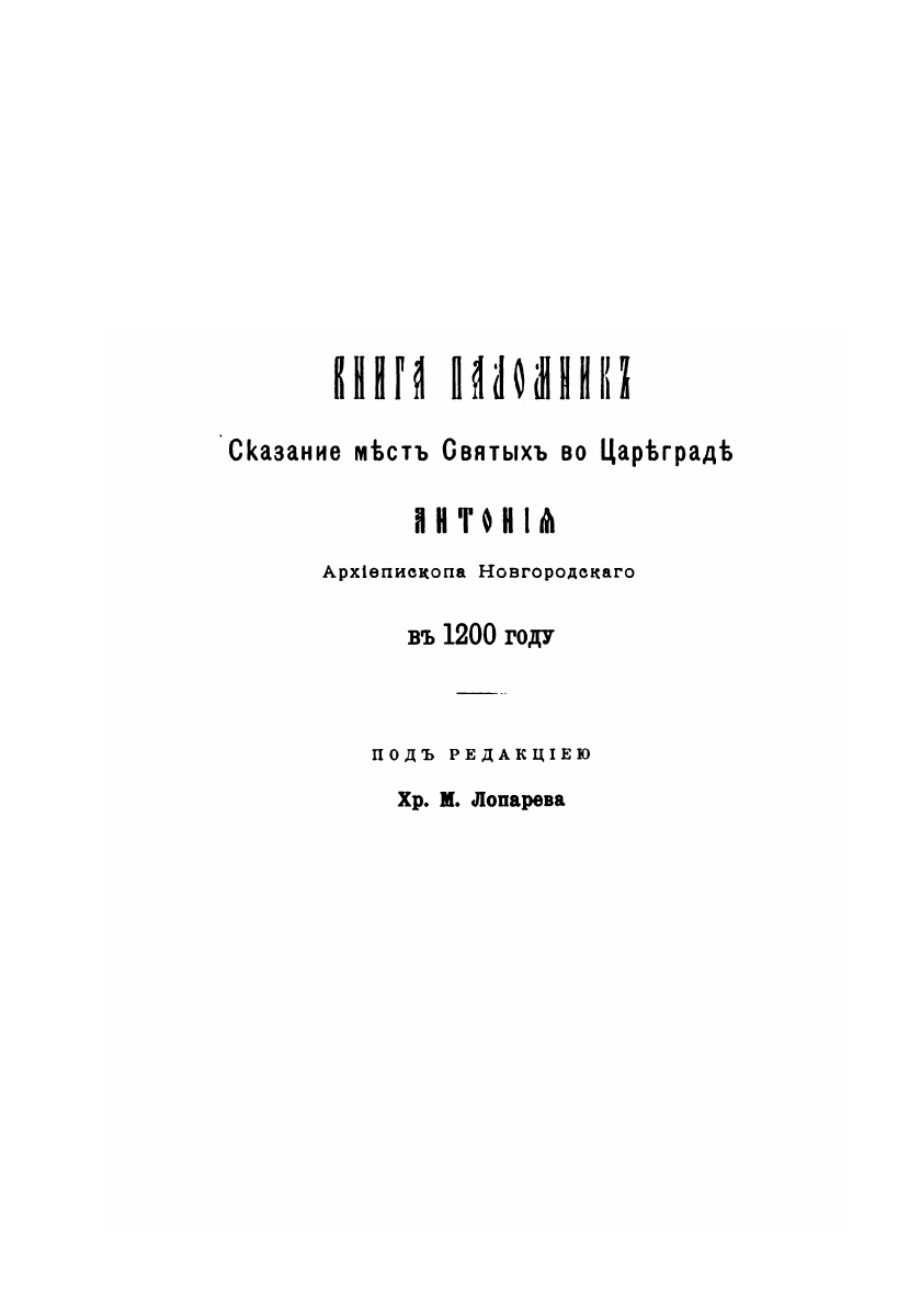 Сказание мест святых во Цареграде Антония, Архиепископа Новгородского, в 1200 г. Редакция X.М. Лопарева.