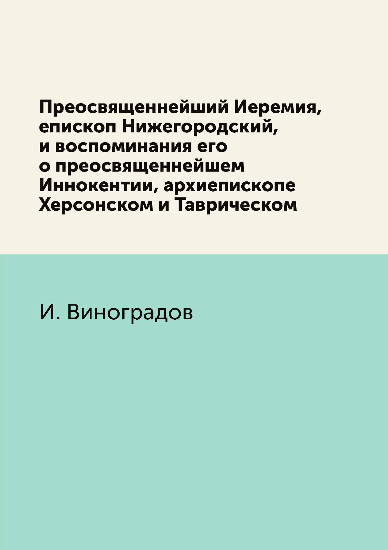 Печатная книга «Преосвященнейший Иеремия, епископ Нижегородский, и воспоминания его о преосвященнейшем Иннокентии, архиепископе Херсонском и Таврическом» в мягкой обложке, язык - русский. В книге 140 страниц, она напечатана на белой офсетной бумаге плотностью 80 г/м². Формат издания — 148x210 мм. Все книги аккуратно упаковываем в прочный трёхслойный непрозрачный картонный конверт.