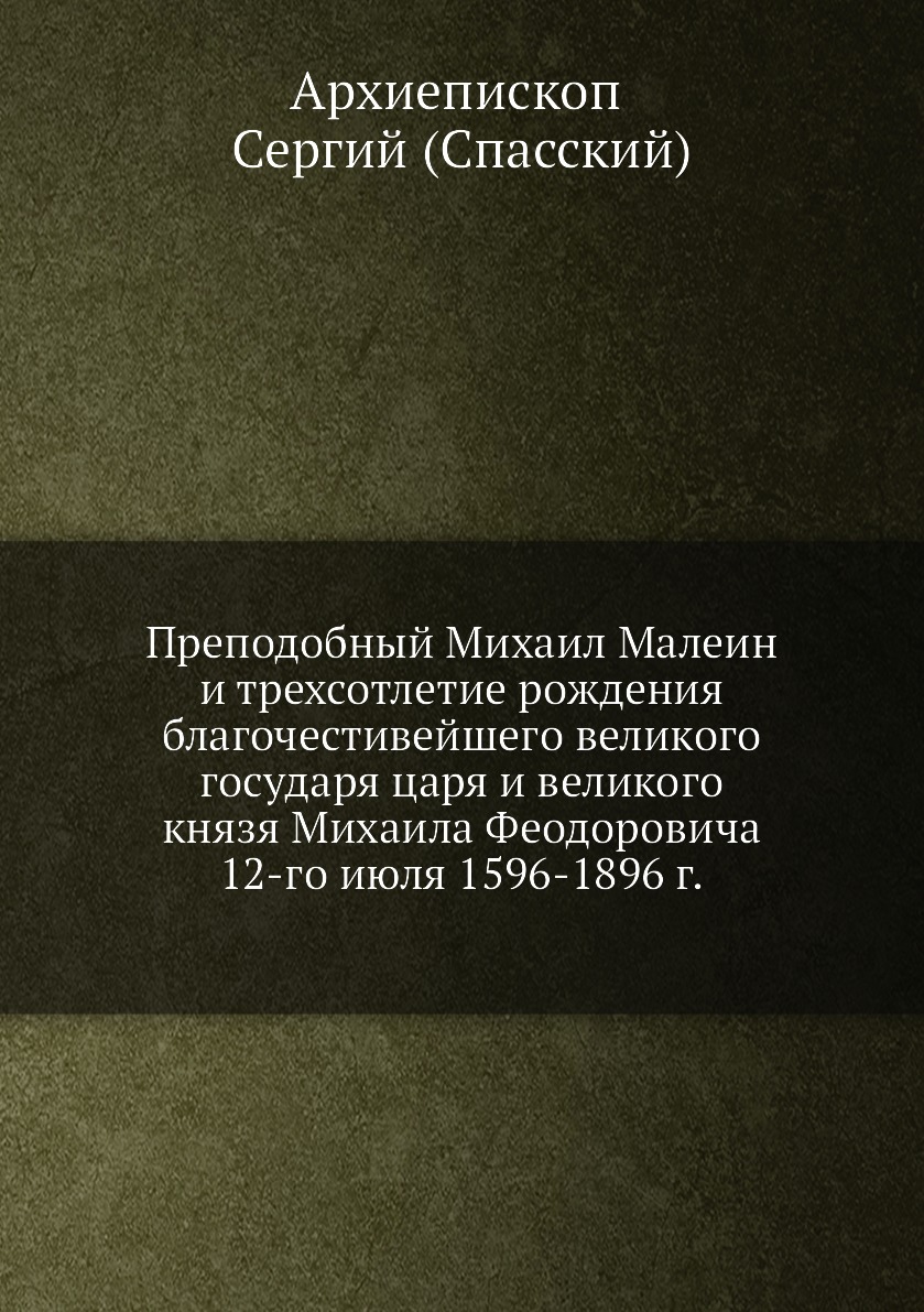 Печатная книга «Преподобный Михаил Малеин и трехсотлетие рождения благочестивейшего великого государя царя и великого князя Михаила Феодоровича 12-го июля 1596-1896 г.» в мягкой обложке, язык - русский. В книге 50 страниц, она напечатана на белой офсетной бумаге плотностью 80 г/м². Формат издания — 148x210 мм. Все книги аккуратно упаковываем в прочный трёхслойный непрозрачный картонный конверт.