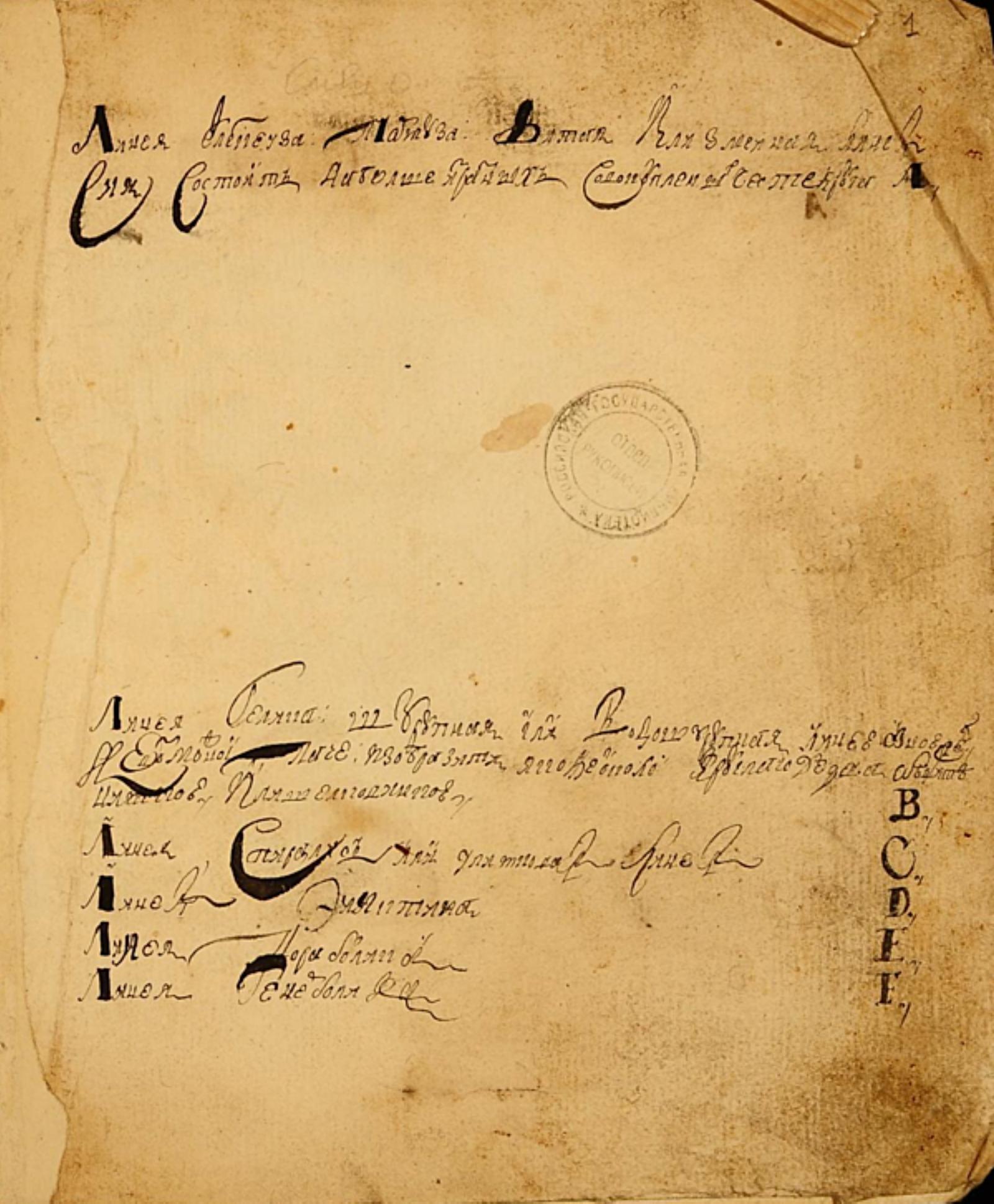 Буркхард фон Пюркенштейн, Антон Эрнст. Приемы циркуля и линейки [Рукопись] : перевод Я. В. Брюса геометрии Буркхарда Фон Пюркенштейна, дополненный задачами по геометрии Я. В. Брюса : [список с 3-го издания 1709 г.] / Буркхард фон Пюркенштейн, Антон Эрнст; пер. Я. В. Брюс. — [Б. м.], середина ХVIII в. — I + 175 л.; 19,5 х 16,2 см.