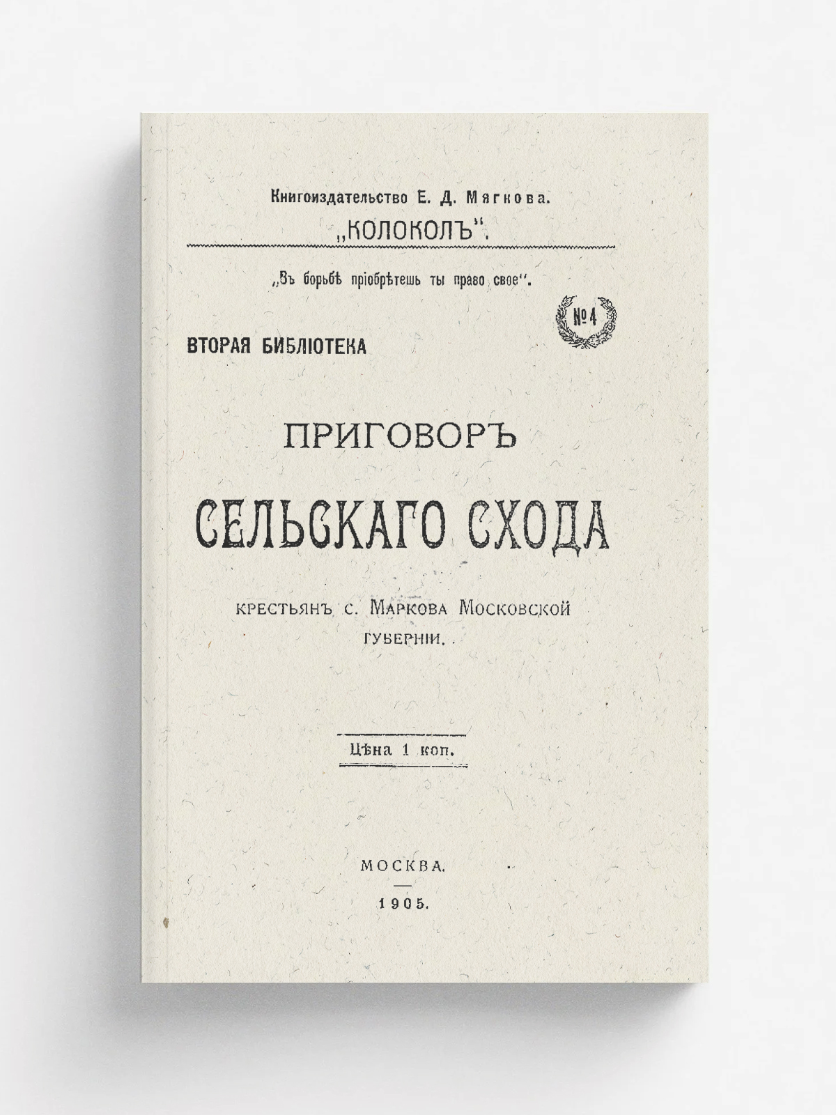 Марковский сельский сход крестьян (Моск. губ.). Приговор Сельского схода крестьян с. Маркова, Московской губернии. — Москва : Колокол, 1905. — 15 с.; 18. — (Вторая библиотека; № 4).