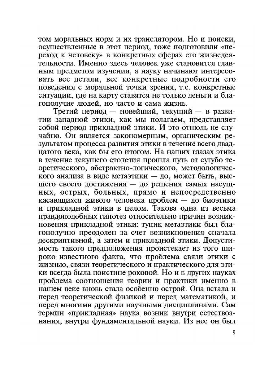 Данная книга – одна из первых в отечественной этике работ, посвященных проблеме возникновения прикладной этики. Исследуется содержание понятия "прикладная этика", соотношение прикладной и теоретической этики, дается объяснение феномена новых видов прикладной этики в последние десятилетия нашего века, в первую очередь, биоэтики и экоэтики. Особое внимание уделено проблемам биоэтики, ее не столько медицинским и биологическим, сколько этическим аспектам и моральным проблемам. Всесторонне проанализированы такие проблемы как эвтаназия, новый критерий смерти, трансплантация органов, аборт. Анализ проведен на материале западной, в основном англо-американской этики.