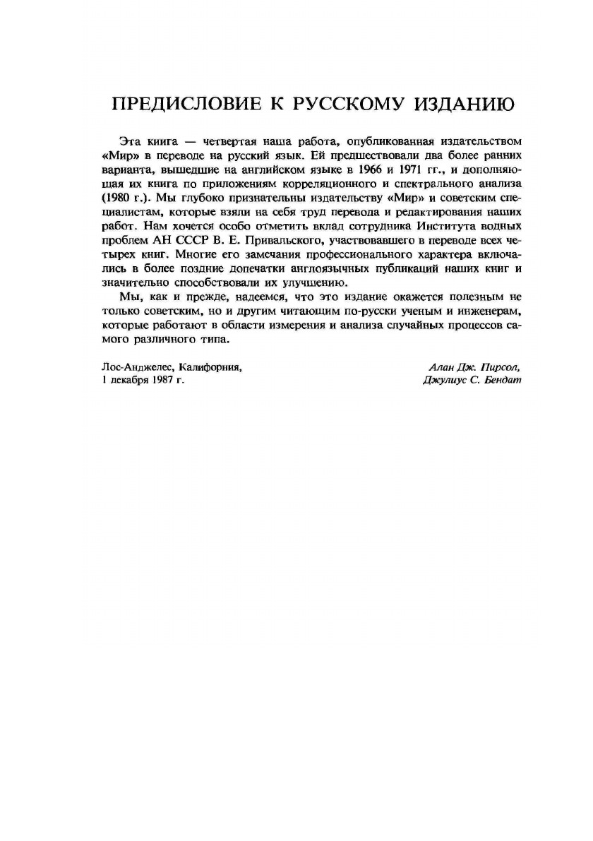 Монография известных специалистов из США, посвященная проблемам сбора и предварительной обработки данных, оценке спектральных плотностей, ковариационных и передаточных функций, использованию этих характеристик для решения прикладных задач, в частности идентификации систем, определения числа трактов распространения случайных сигналов, выделения периодических составляющих.
