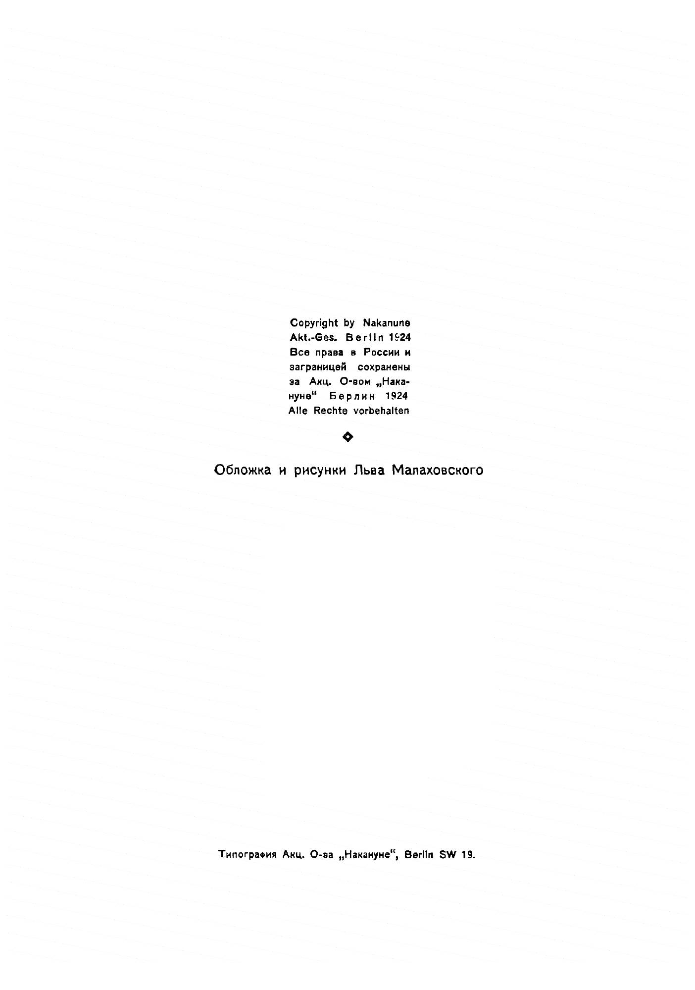 Эта книга — репринт оригинального издания (издательство "Берлин. Накануне", 1924 год), созданный на основе электронной копии высокого разрешения, которую очистили и обработали вручную, сохранив структуру и орфографию оригинального издания. Редкие, забытые и малоизвестные книги, изданные с петровских времен до наших дней, вновь доступны в виде печатных книг.