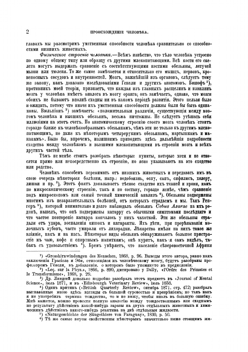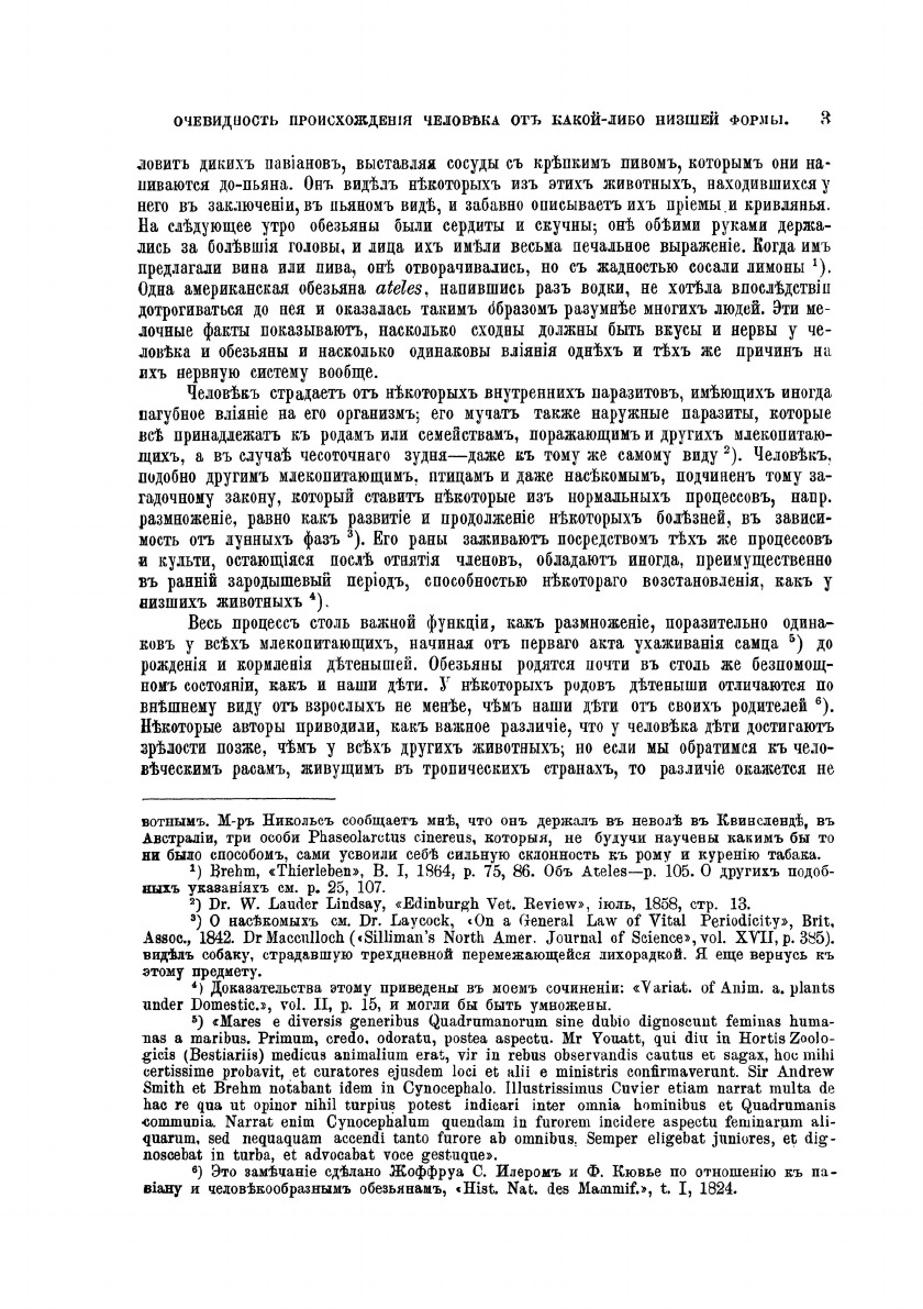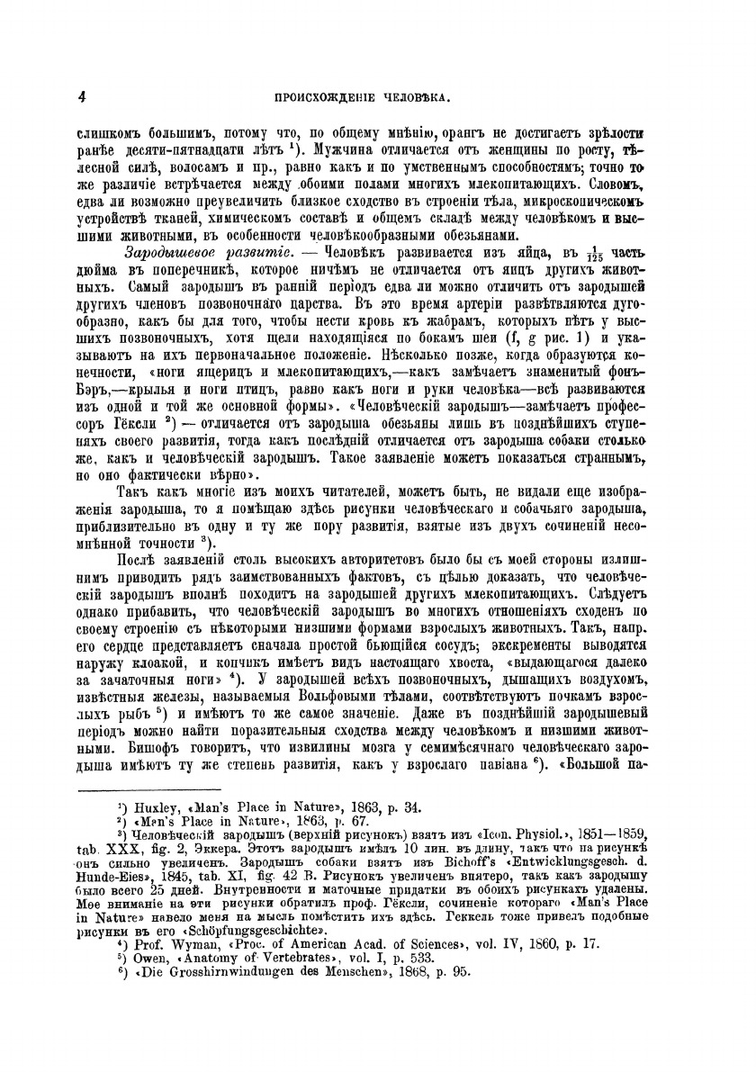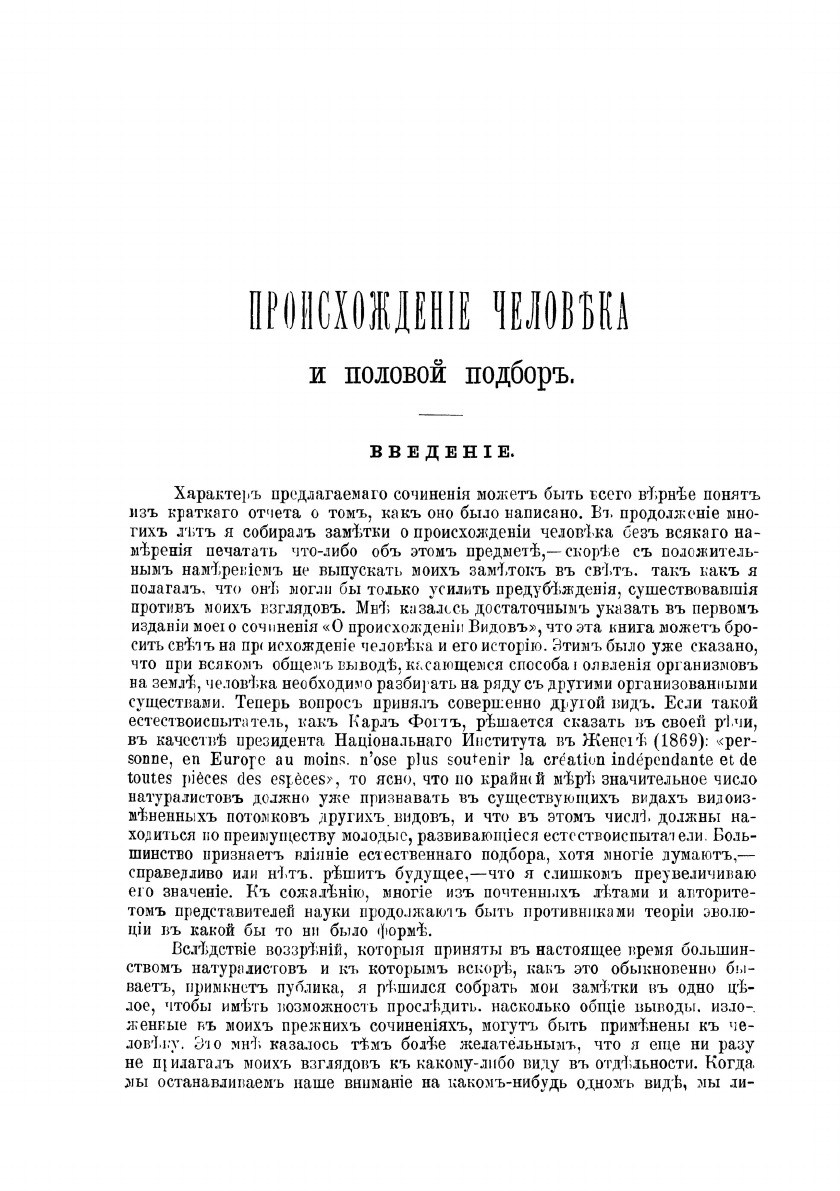 В научном труде «Происхождение человека и половой отбор», изданной в 1871 году, Чарлз Дарвин впервые изложил своивзгляды на проблему происхождения человека, на многочисленных примерах показав близкое родство человека с высшимиантропоидными обезьянами, попытался научно объяснить движущие силы антропогенеза, исходя из теории отбора. В 1896второе издание этой книги было переиздано в С.-Петербурге на русском языке, в переводе И. Сеченова.