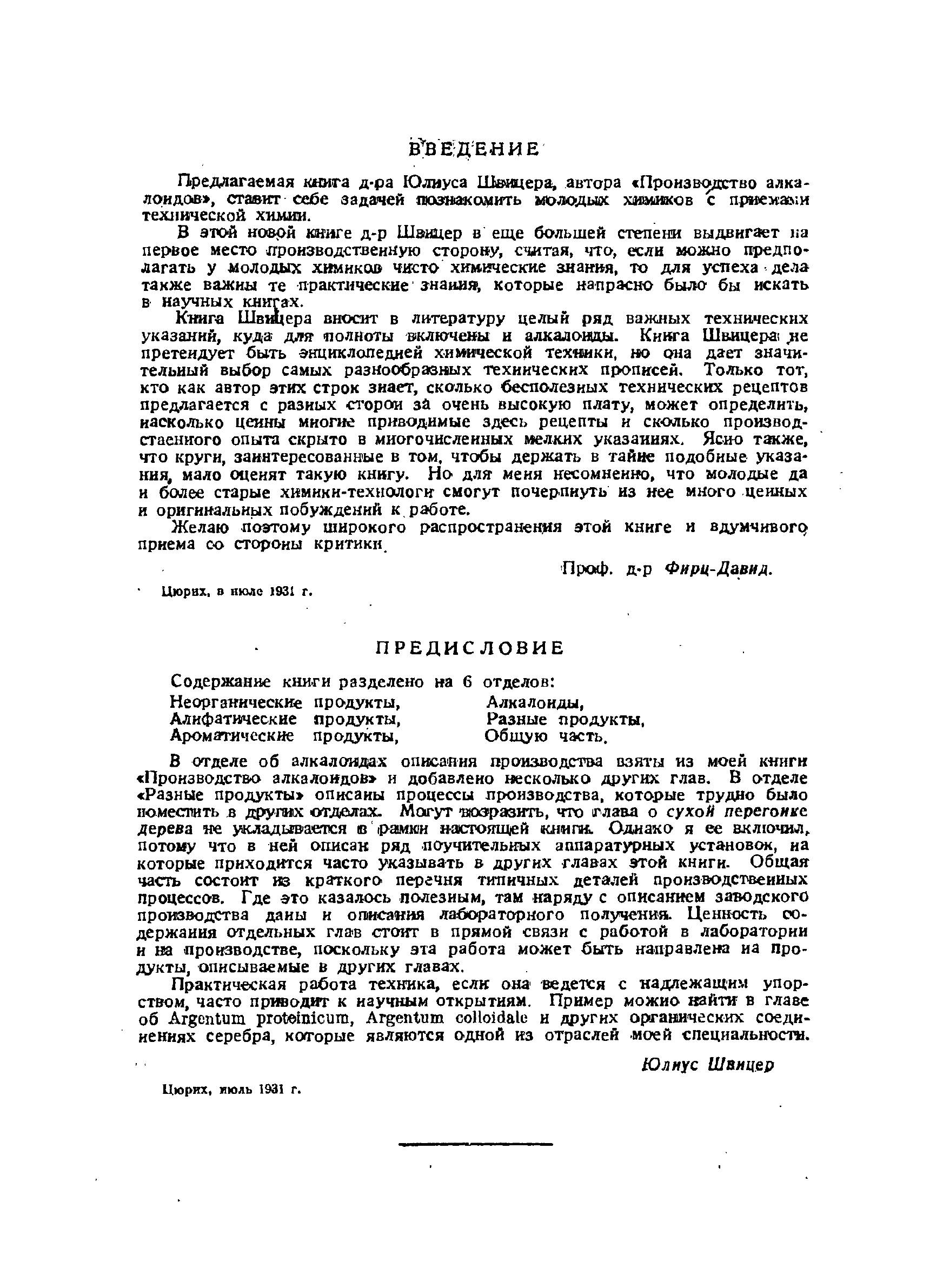 Предлагаемая книга ставит себе задачей познакомить молодых химиков с приемами технической химии. Книга Швицера вносит в литературу целый ряд важных технических указаний, она не претендует быть энциклопедией химической техники, но дает значительный выбор самых разнообразных технических прописей.