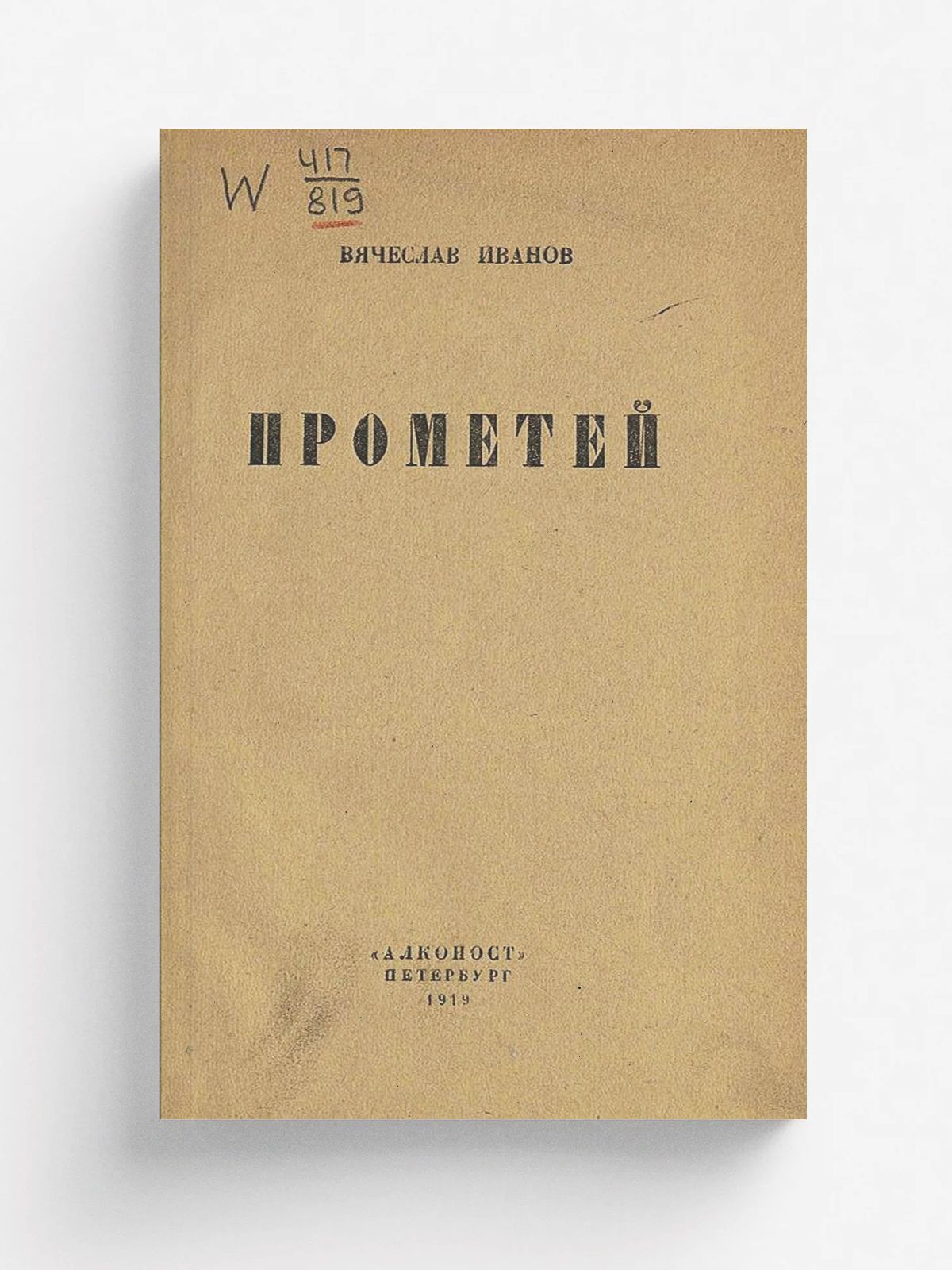 Иванов, Вячеслав Иванович (1866–1949). Прометей [Текст] : трагедия / Вячеслав Иванов. — Петербург : Алконост, 1919. — XXIV, 76, [5] с.; 21 см.