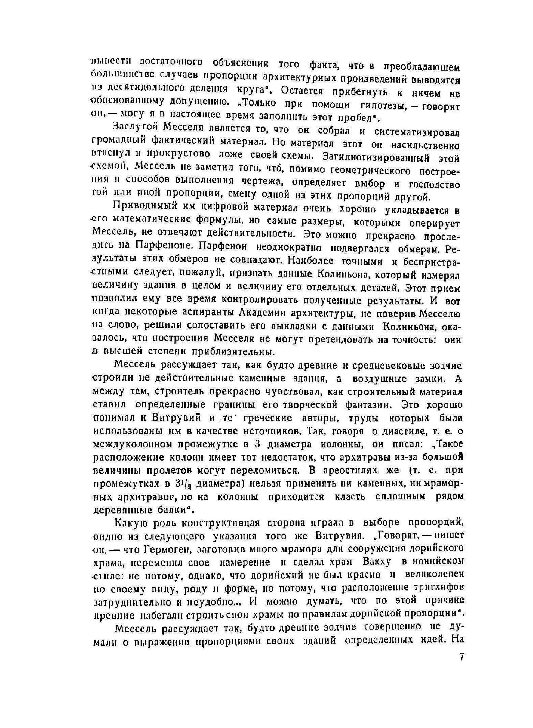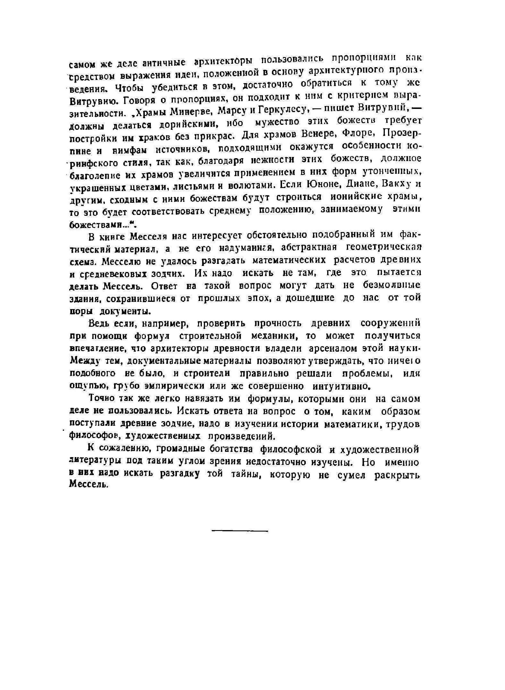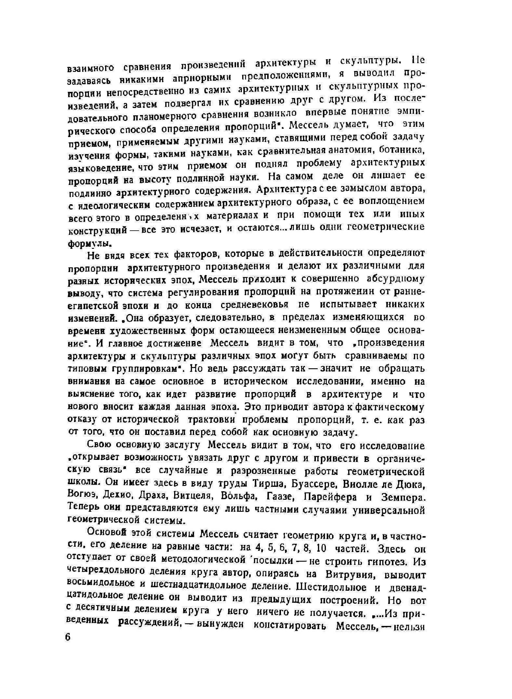 В своем исследовании о пропорциях античной и средневековой архитектуры Мессель исходит из отрицания довольно широко распространенного заблуждения, будто художественное творчество не подчиняется никаким законам и не укладывается ни в какие рамки. В связи с этим он ставит перед собой задачу найти законы, которыми определялись пропорции художественных композиций древности.