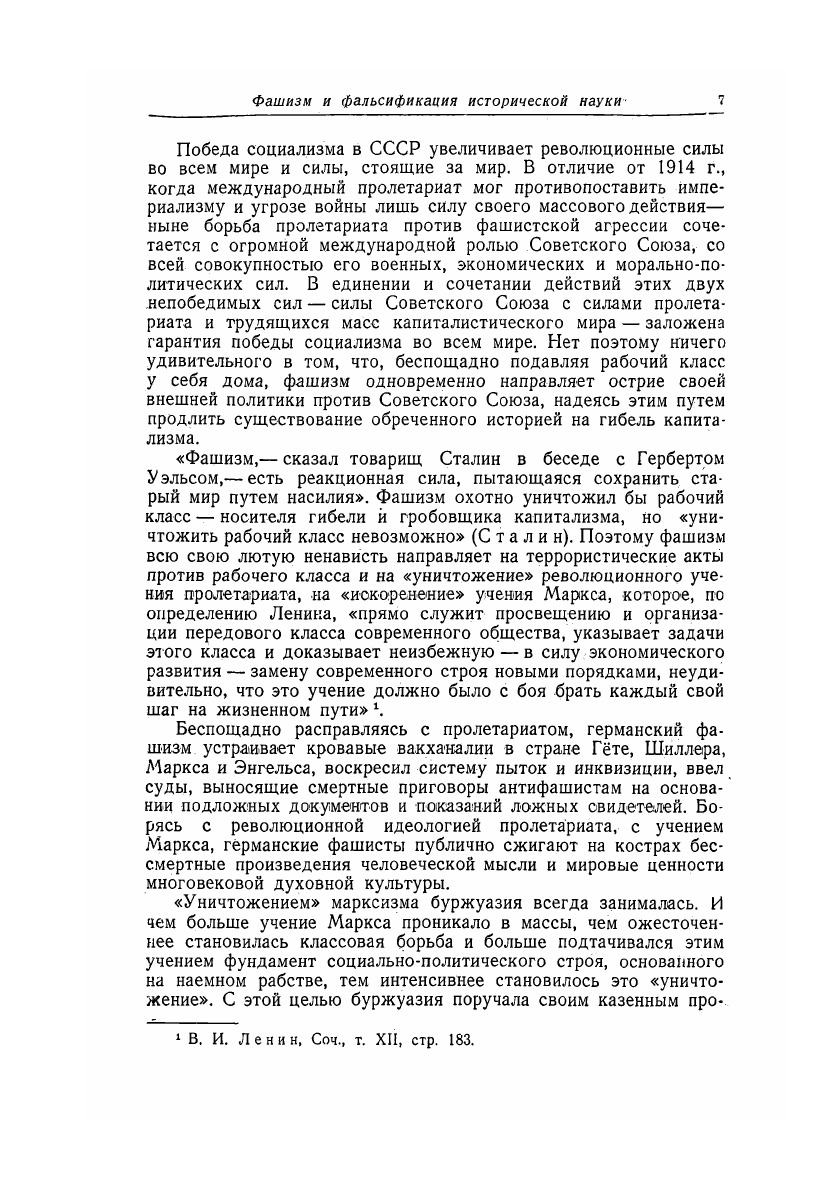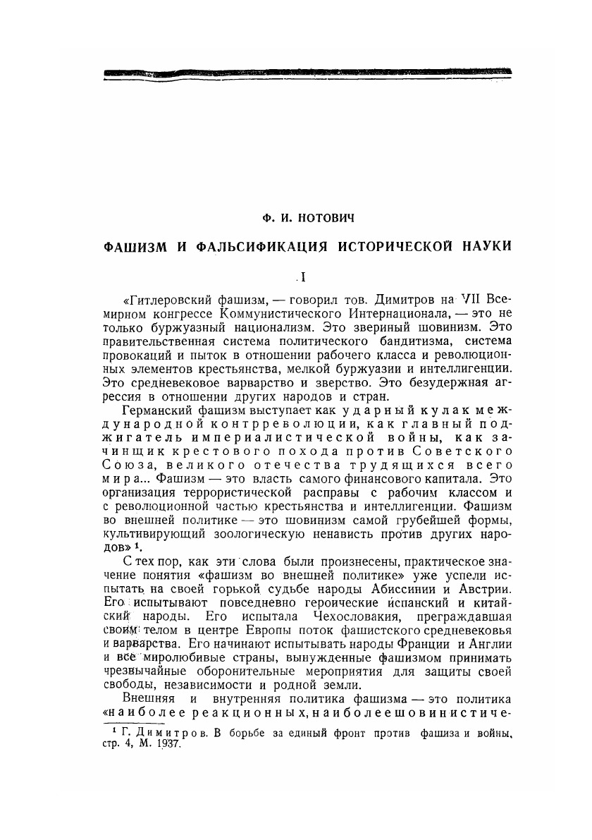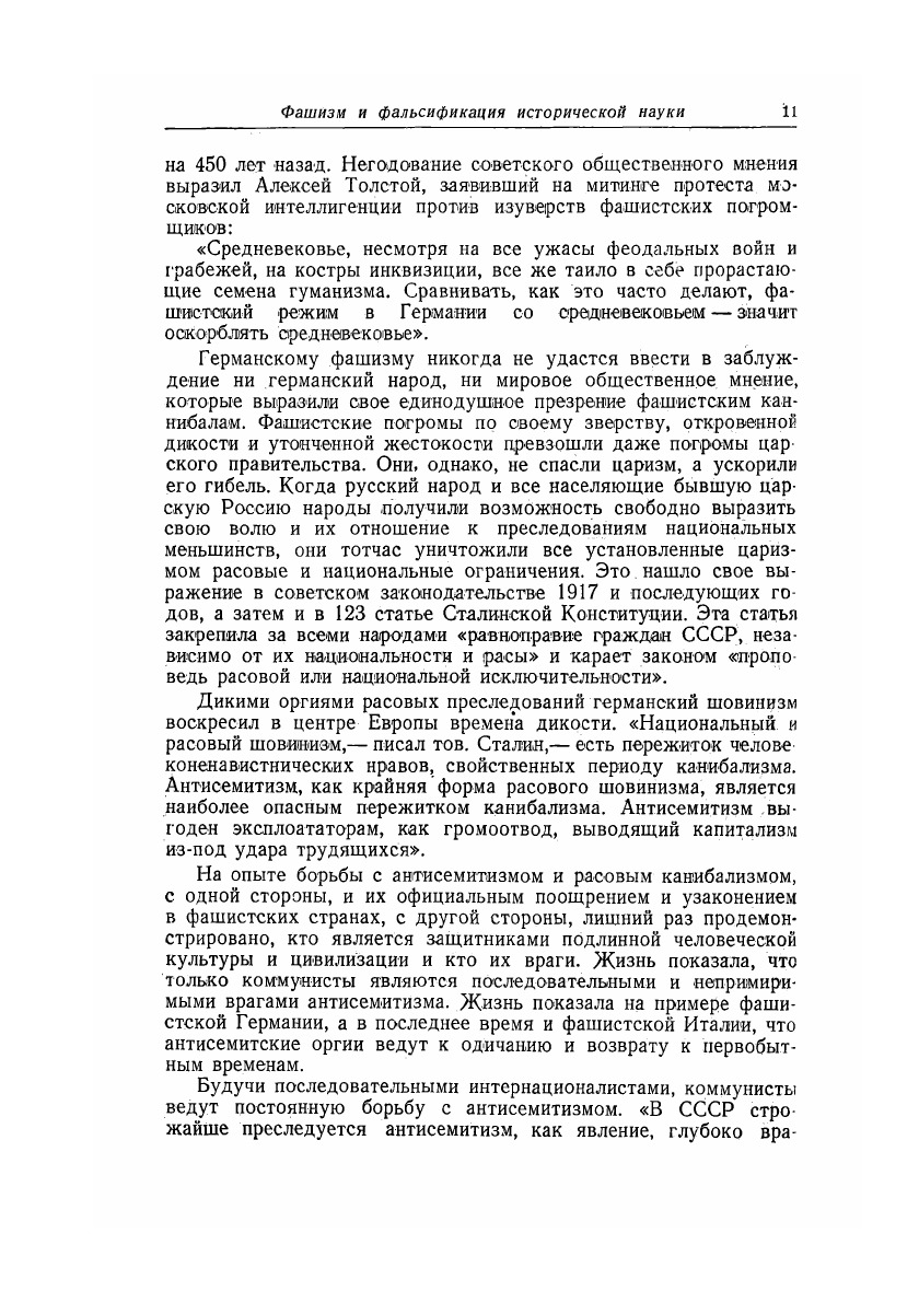 Настоящий сборник, подготовленный Институтом Истории Академии Наук СССР, следует рассматривать, как первый шаг, как начало расчистки некоторых участков исторической науки от того мусора, который успели нанести гитлеровские штурмовики, захватившие монополию на «научном фронте» в Германии. Сборник охватывает ряд важнейших исторических этапов и вскрывает на конкретном историческом материале жульнические фальсификаторские приемы гитлеровских «историков», подвязавшихся в области древней, средневековой и новой истории. Много места в сборнике отводится вопросу о так называемых «виновниках» мировой войны, которым особенно рьяно занимается фашистская литература. Ведь фашисты пытаются не только оправдать свой односторонний разрыв Версальского мирного договора, но неприкрыто обосновать необходимость новых захватнических войн и, в первую очередь, войну против СССР.