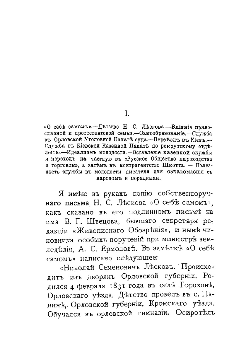 Н. С. Лесков. Его жизнь, сочиненния, полемика и воспоминания о нем, с редким портретом.Санкт-Петербург : Типография М. Меркушева, 1904.