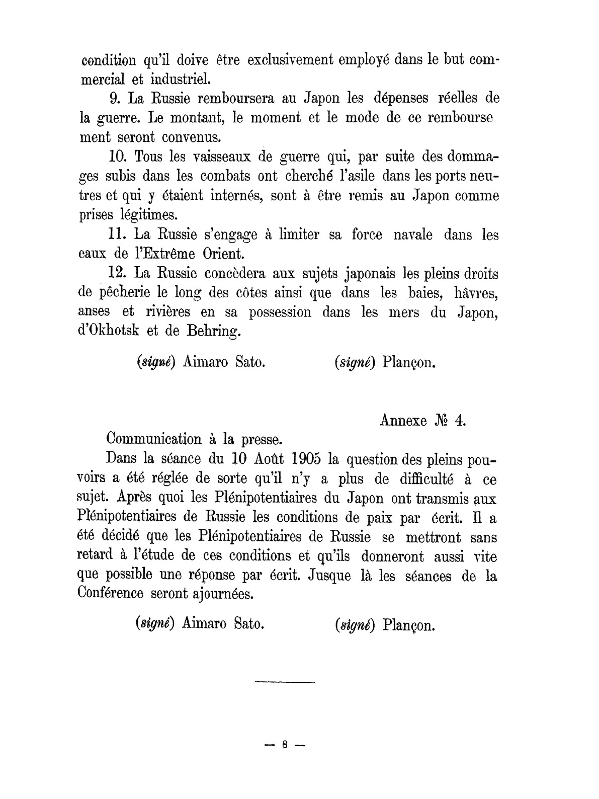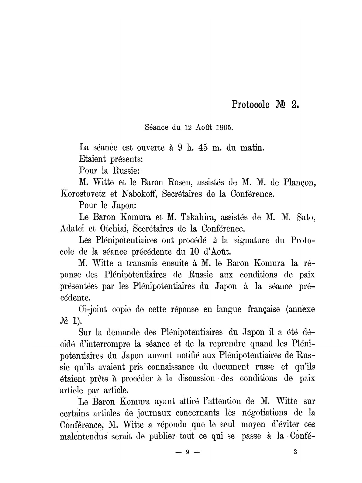 Протоколы Портсмутской мирной конференции и текст договора между Россией и Японией, заключенного в Портсмуте 23 августа (5 сентября) 1905 года.